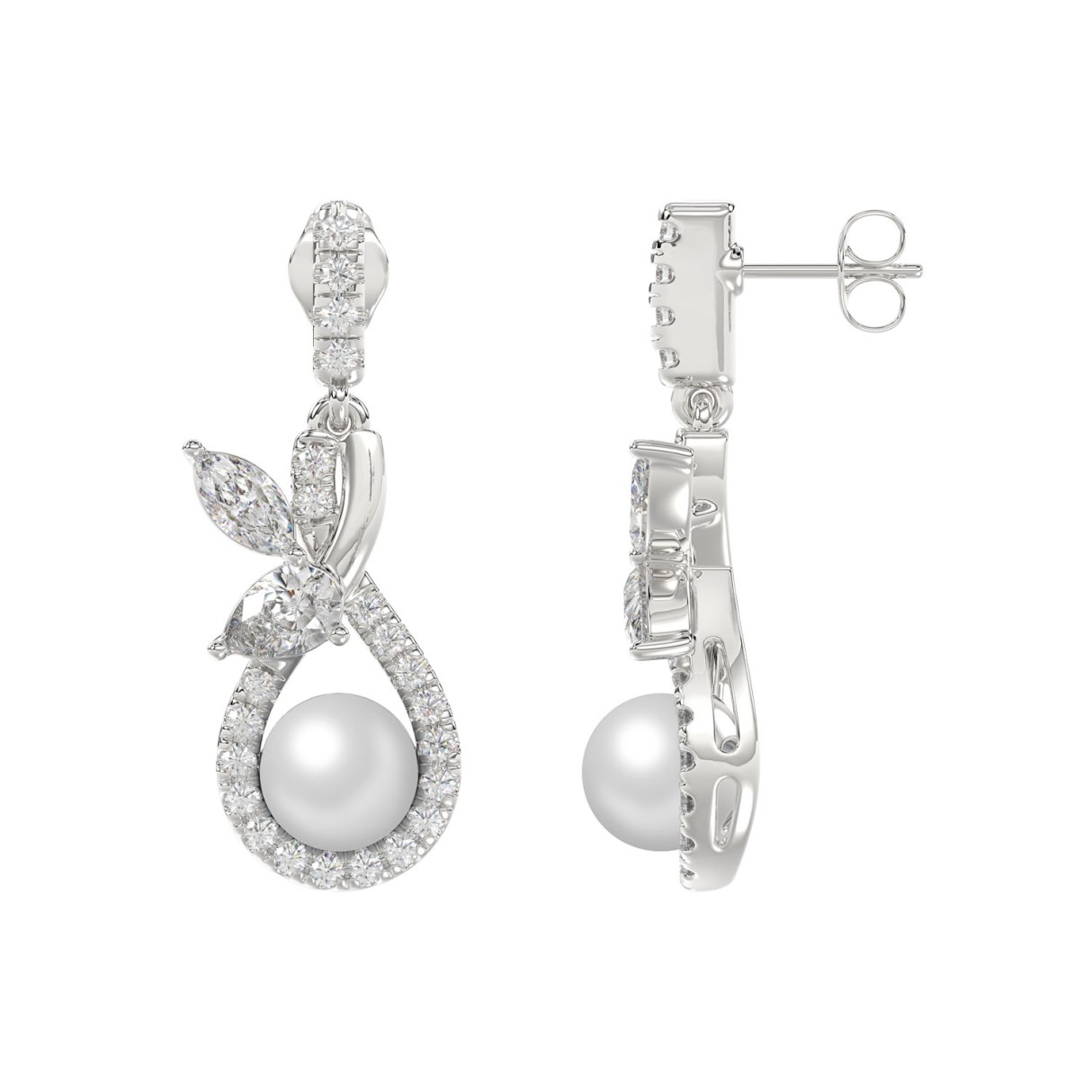14K WHITE GOLD 3/4CT ROUND/MARQUISE/PEARL DIAMOND LADIES EARRINGS
