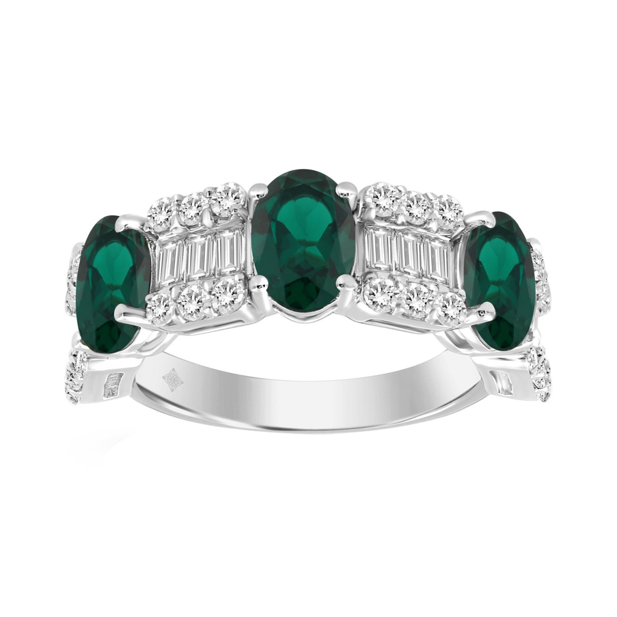 14K WHITE GOLD 3 5/8CT ROUND/BAGUETTE/OVAL DIAMOND LADIES BAND (GREEN EMERALD OVAL 2 1/3CT)