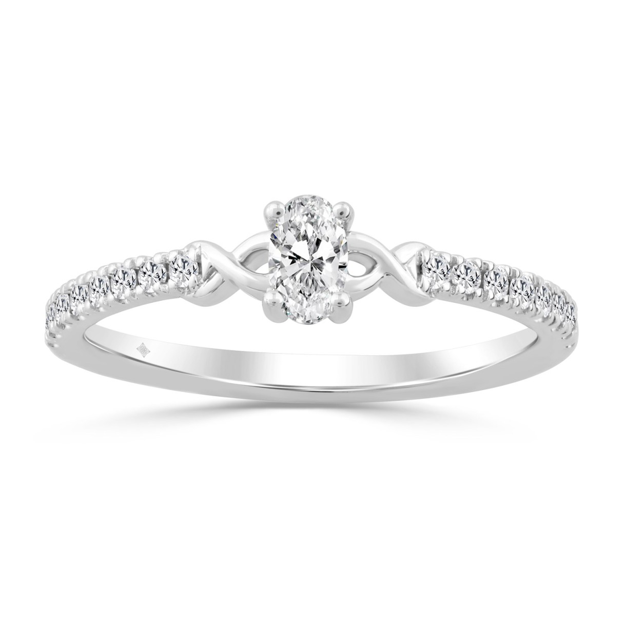 14K WHITE GOLD 3/8CT ROUND/OVAL DIAMOND LADIES RING (CENTER STONE OVAL DIAMOND 1/4CT)