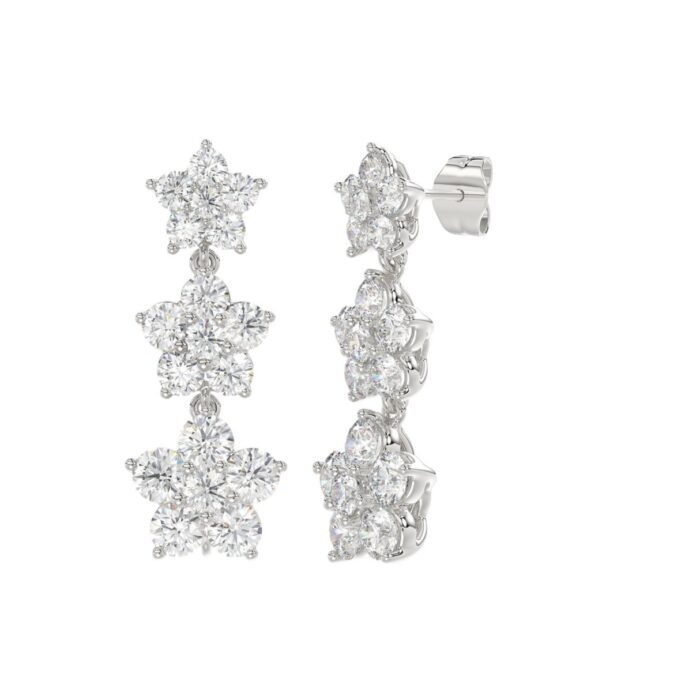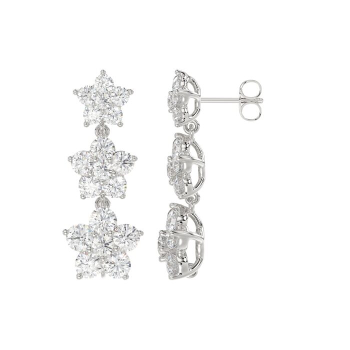 14K WHITE GOLD 3CT ROUND DIAMOND LADIES LINEAR EARRINGS