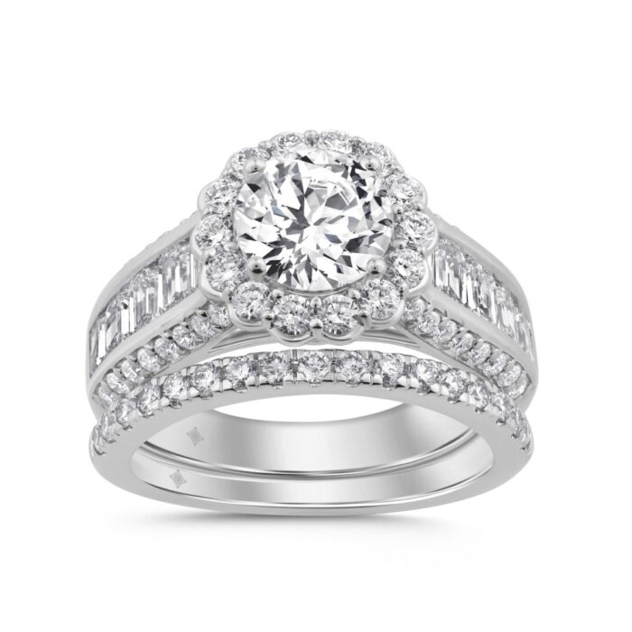 14K WHITE GOLD 4.00CT ROUND/EMERALD DIAMOND LADIES BRIDAL SET (CENTER STONE ROUND DIAMOND 1 1/2CT)