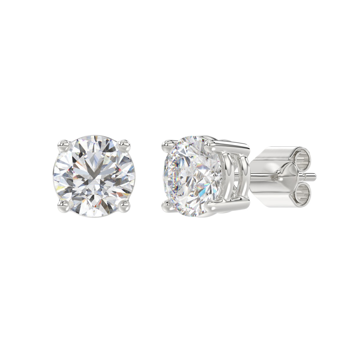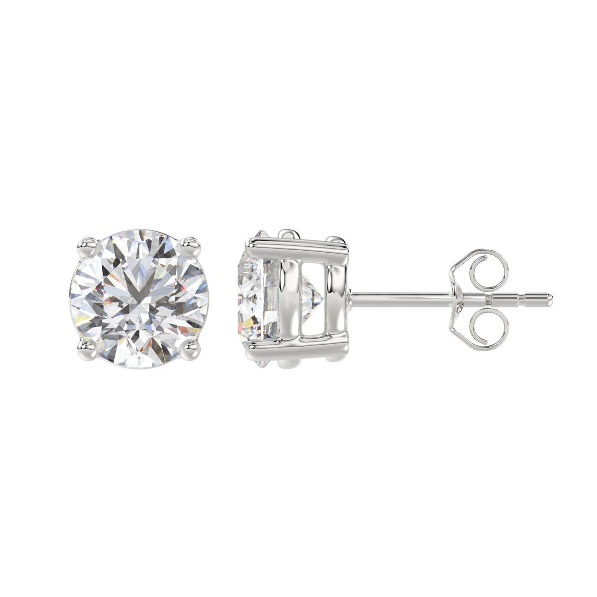 14K WHITE GOLD 4CT ROUND DIAMOND LADIES SOLITAIRE EARRINGS (CENTER STONE ROUND DIAMOND 2CT )