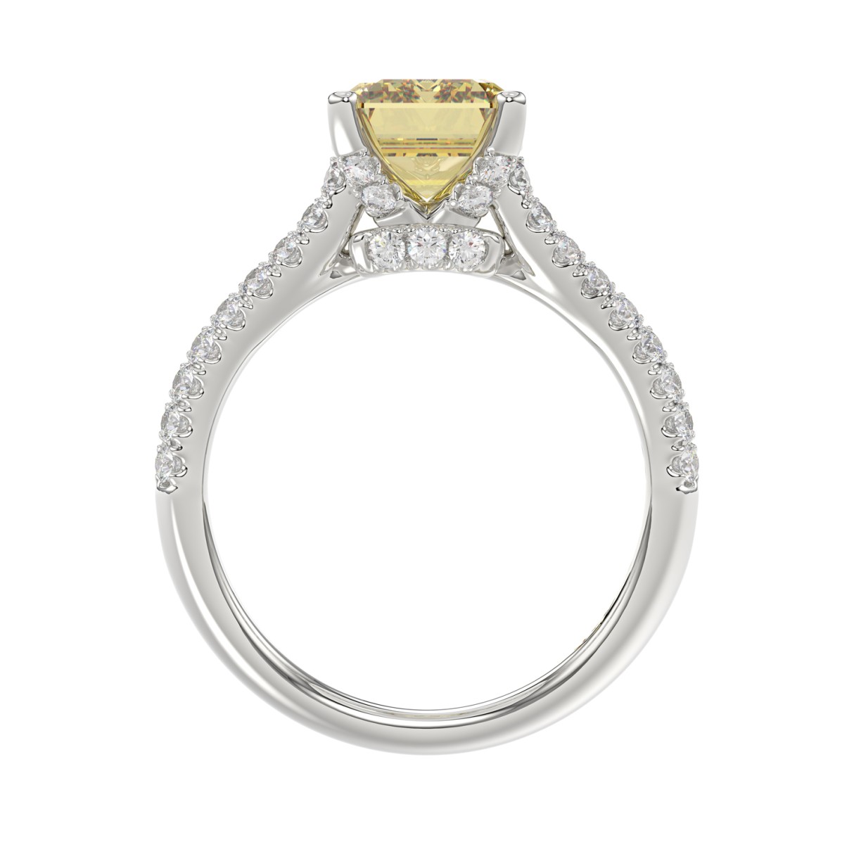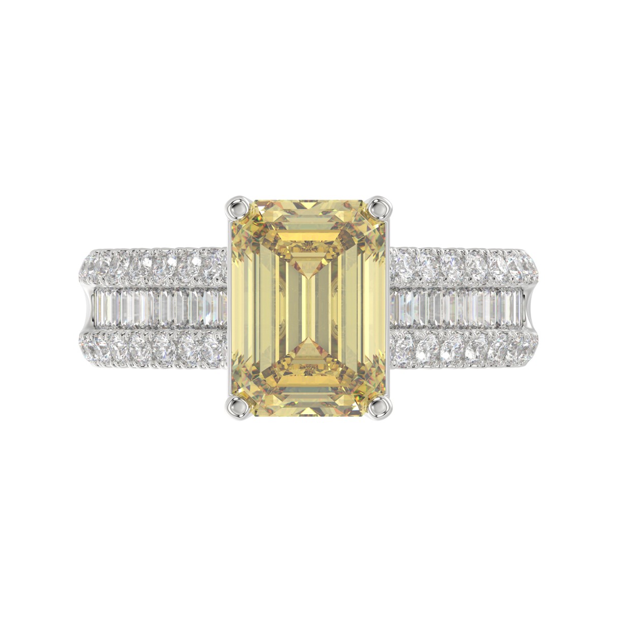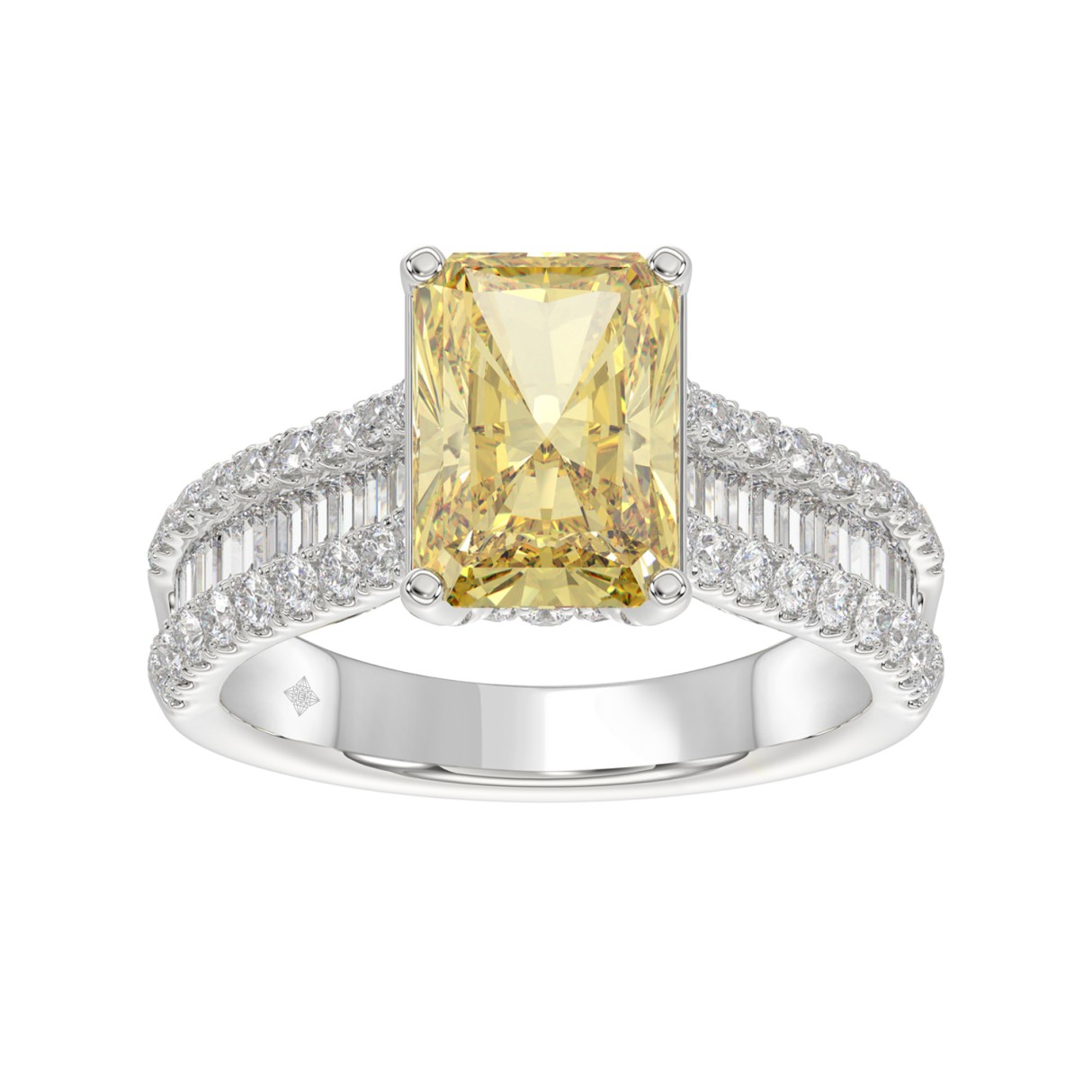 14K WHITE GOLD 5 1/4CT ROUND/BAGUETTE/RADIANT DIAMOND LADIES RING (CENTER STONE YELLOW RADIANT DIAMOND 3.00CT)