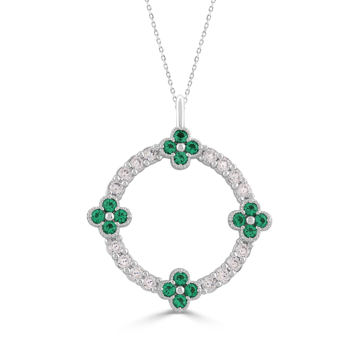 14K WHITE GOLD 5/8CT ROUND/ROUND GREEN DIAMOND LADIES PENDANT