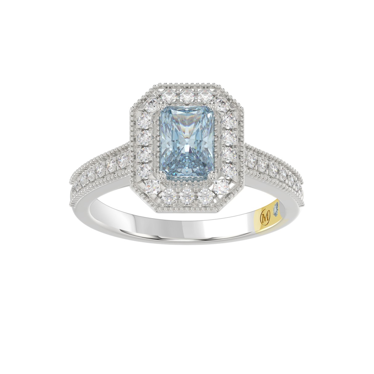 14K WHITE GOLD CRAFTED WITH 18K YELLOW GOLD BLACK PLATE 1 1/2CT ROUND/BLUE EMERALD DIAMOND LADIES RING