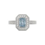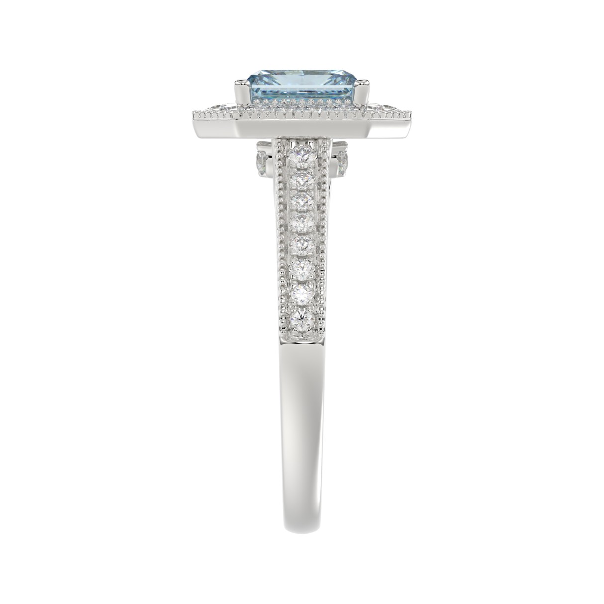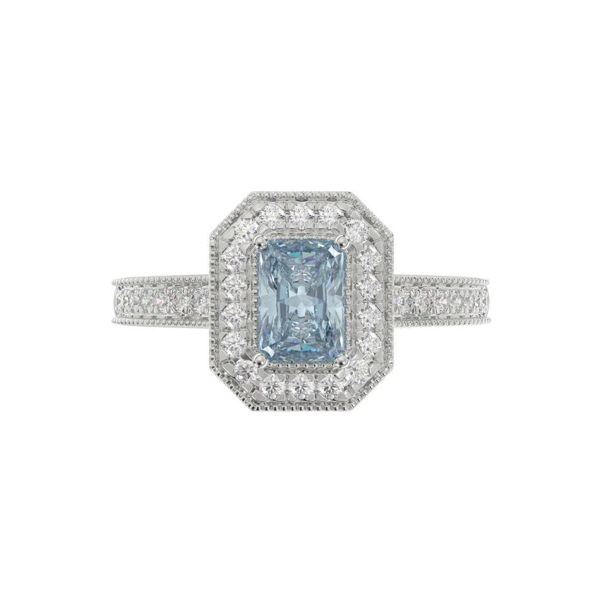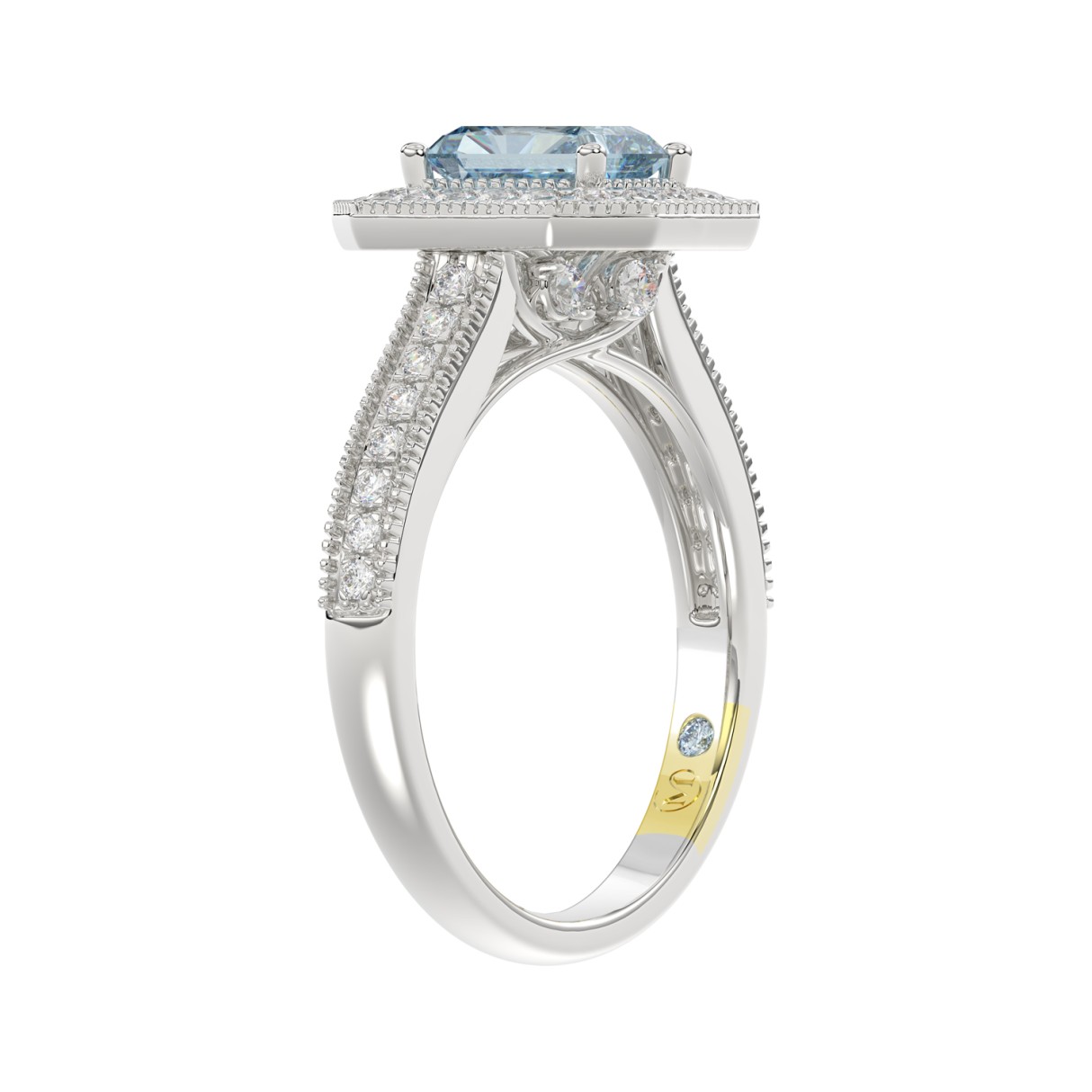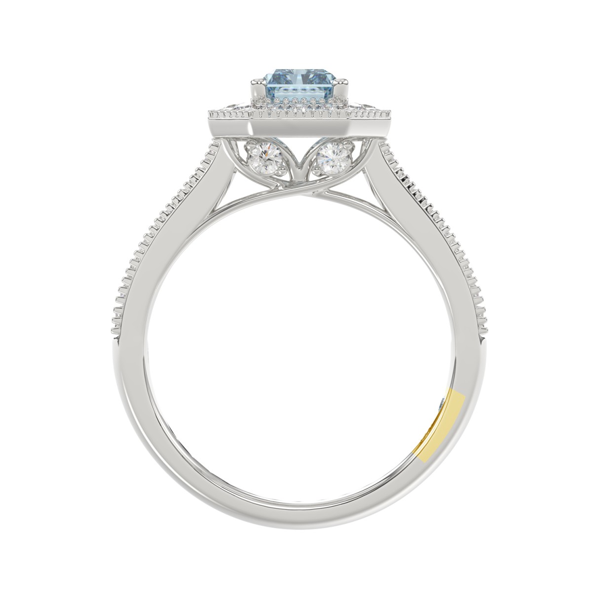 14K WHITE GOLD CRAFTED WITH 18K YELLOW GOLD BLACK PLATE 1 1/2CT ROUND/BLUE EMERALD DIAMOND LADIES RING