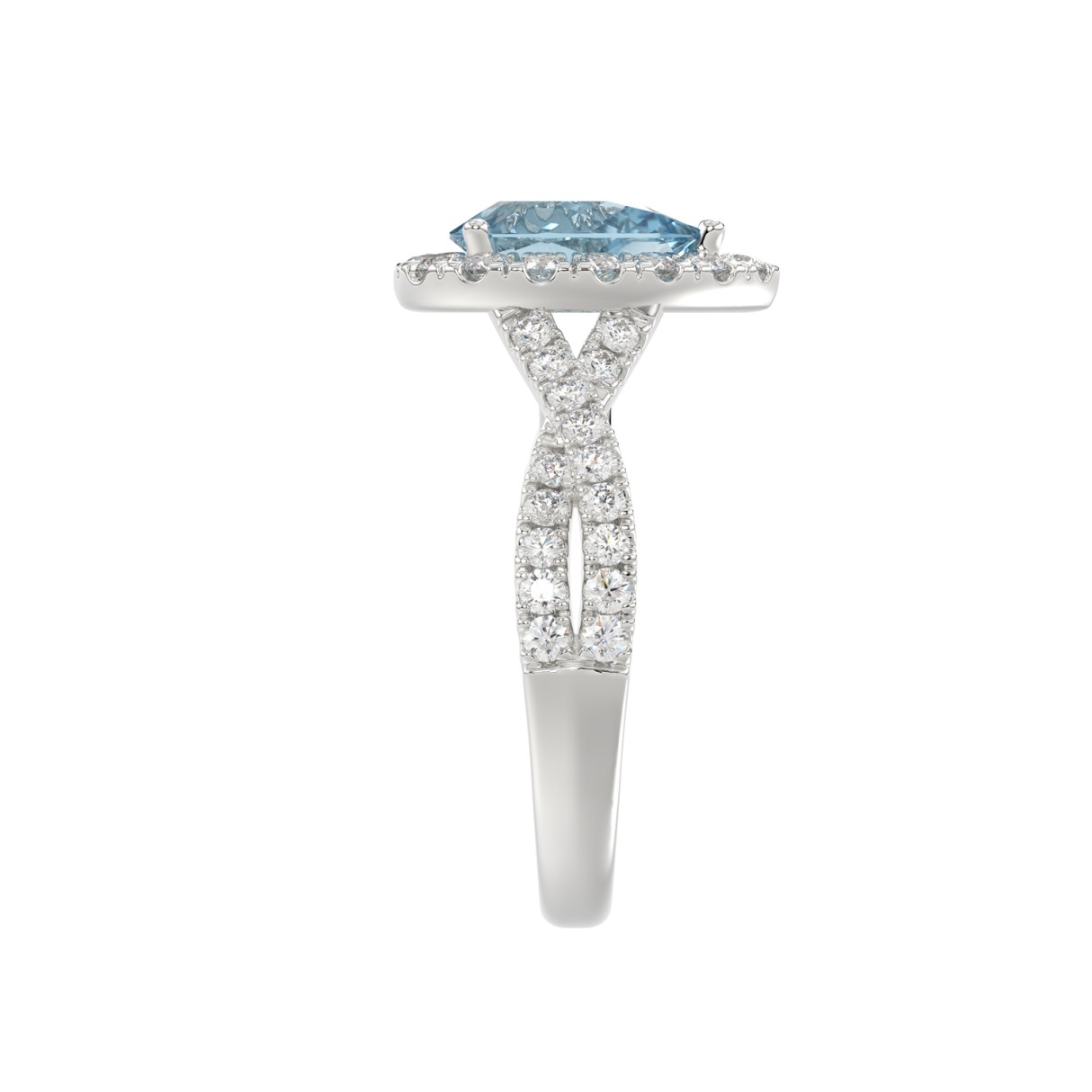 14K WHITE GOLD CRAFTED WITH 18K YELLOW GOLD SHANK 1 3/4CT ROUND/PEAR DIAMOND LADIES RING (CENTER STONE BLUE PEAR DIAMOND 1.00CT)