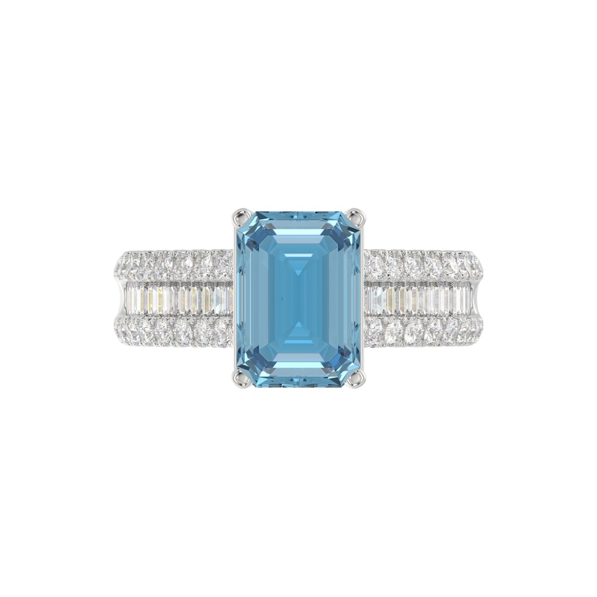 14K WHITE GOLD CRAFTED WITH 18K YELLOW GOLD SHANK 4.00CT ROUND/RADIANT/BAGUETTE DIAMOND LADIES RING (CENTER STONE RADIANT BLUE DIAMOND 3.00CT)