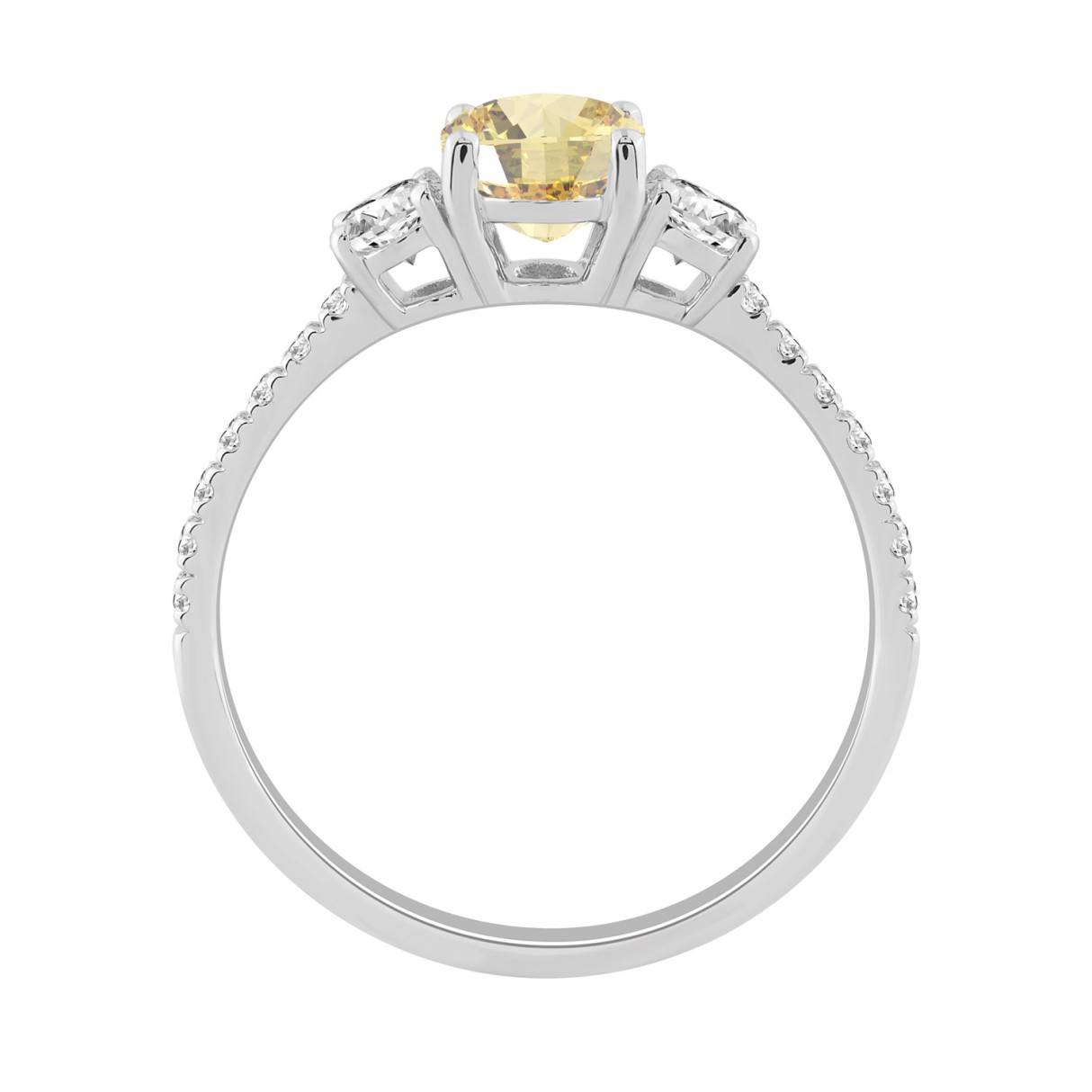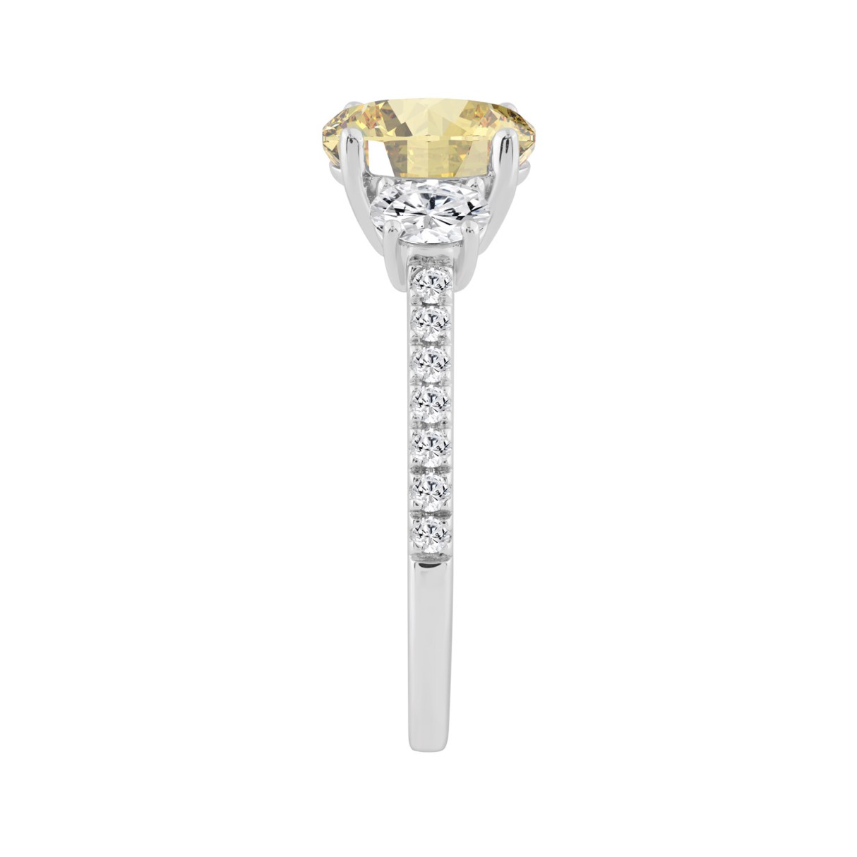 14K White Gold Yellow Oval/Round Diamond 1 1/4 CT Ladies Engagement Ring 1.00CT Yellow Oval Center stone (Color F-G -Clarity VS1/VS2)