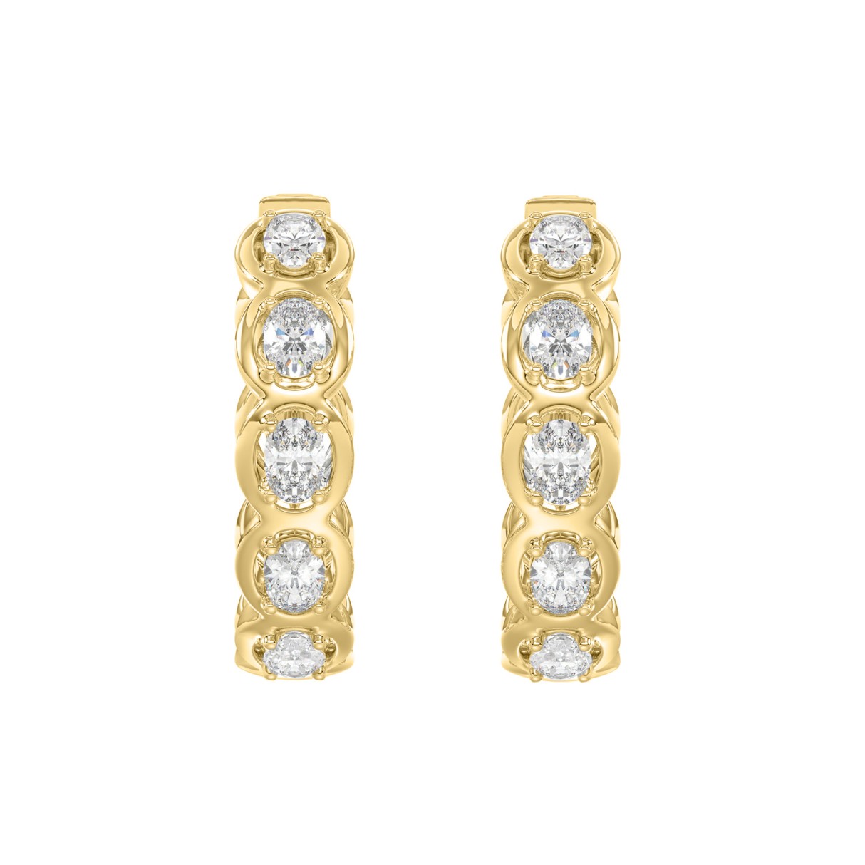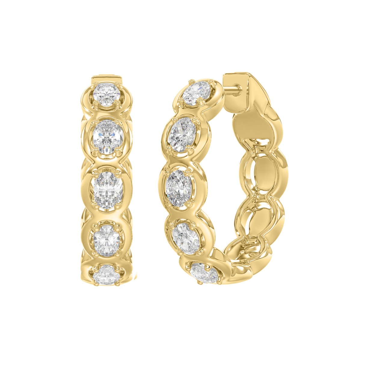 14K YELLOW GOLD 1.00CT OVAL DIAMOND HOOP EARRINGS