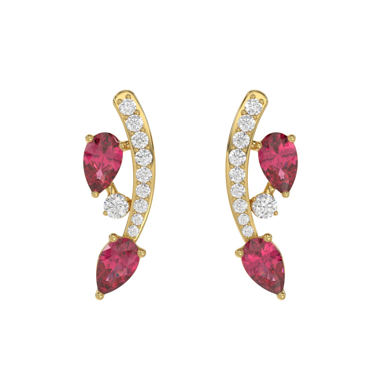 14K YELLOW GOLD 1.00CT ROUND/PEAR DIAMOND LADIES EARRINGS (PEAR RUBY DIAMOND 7/8CT)