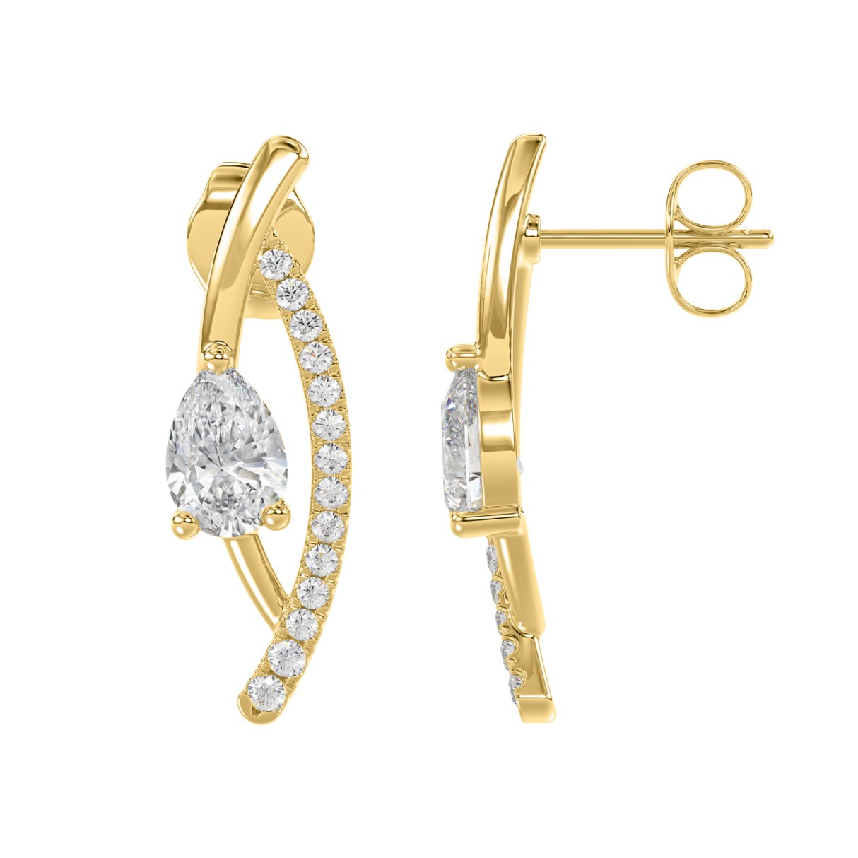 14K YELLOW GOLD 1.00CT ROUND/PEAR DIAMOND LADIES EARRINGS