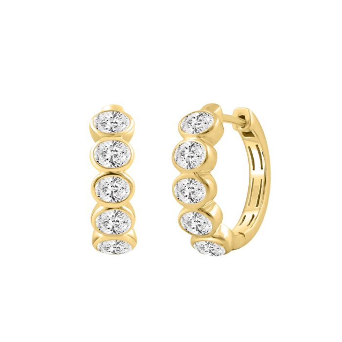14K YELLOW GOLD 1 1/2CT OVAL DIAMOND HOOP EARRINGS