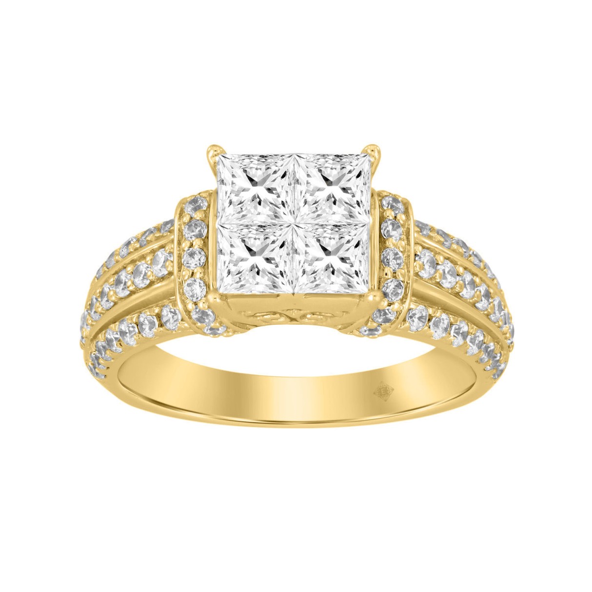 14K YELLOW GOLD 1 1/2CT ROUND/PRINCESS DIAMOND LADIES RING
