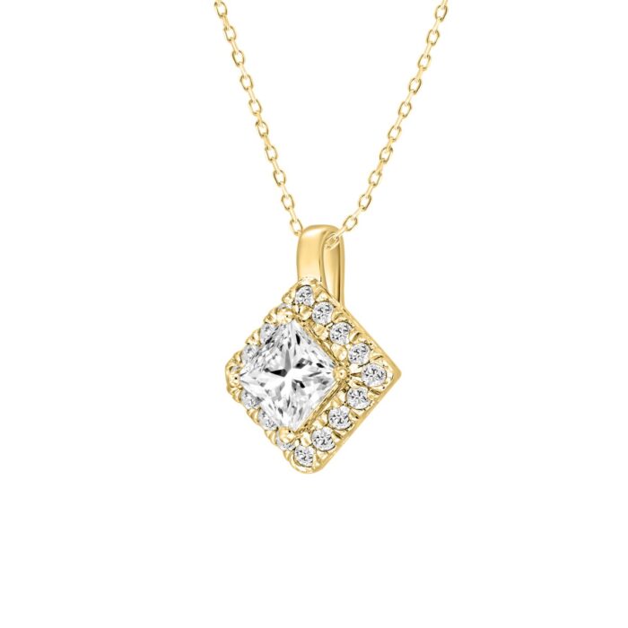 14K YELLOW GOLD 1 1/4CT ROUND/PRINCESS DIAMOND LADIES PENDANT WITH CHAIN (CENTER STONE PRINCESS DIAMOND 1CT