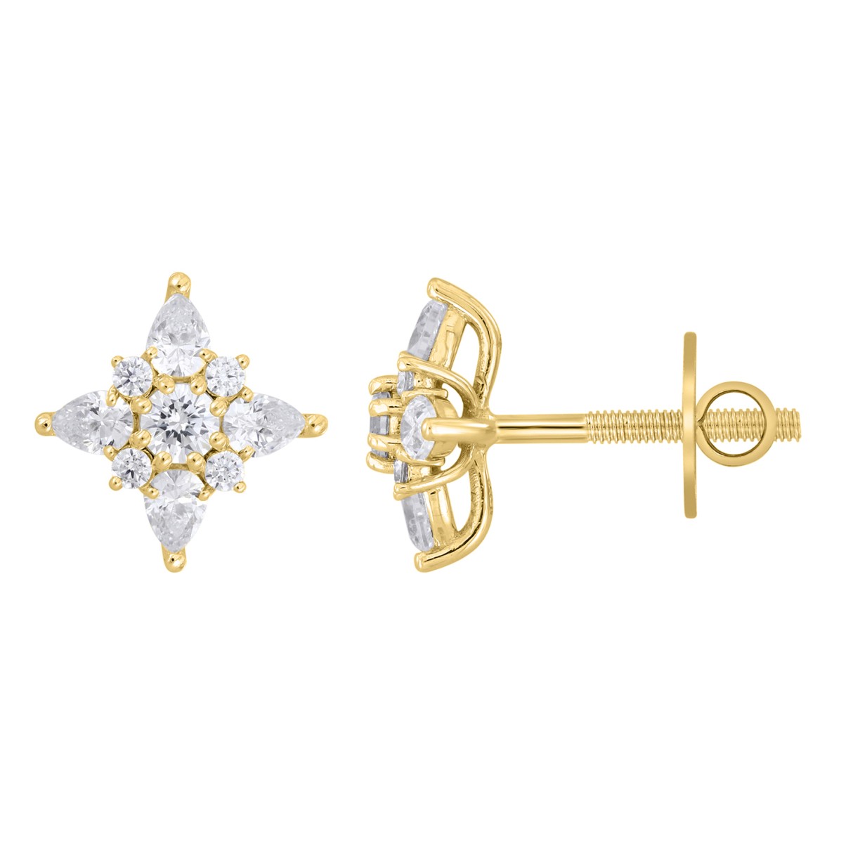 14K YELLOW GOLD 1CT ROUND/PEAR DIAMOND LADIES EARRINGS