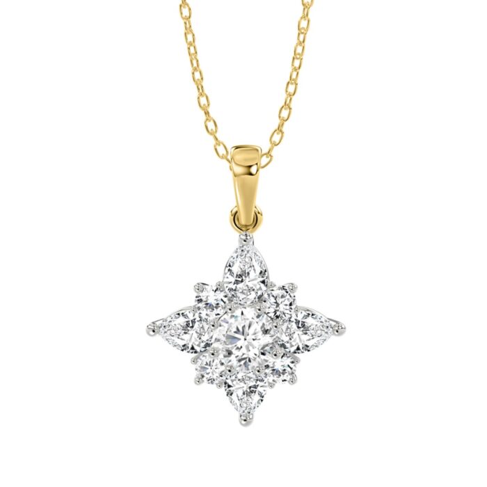 14K YELLOW GOLD 1CT ROUND/PEAR DIAMOND LADIES PENDANT WITH CHAIN