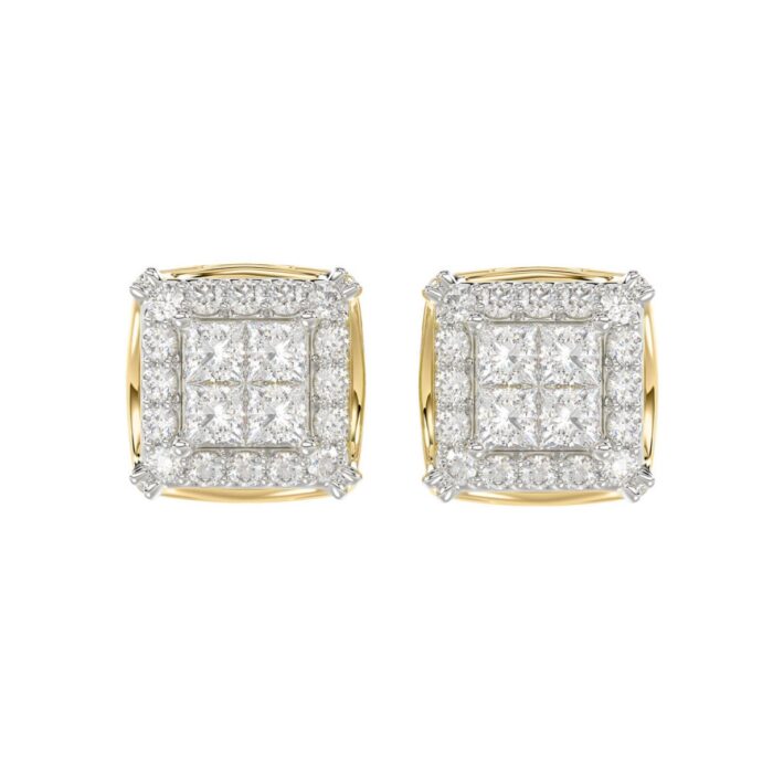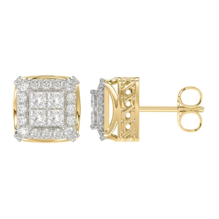 14K YELLOW GOLD 1CT ROUND/PRINCESS DIAMOND MEN’S EARRINGS
