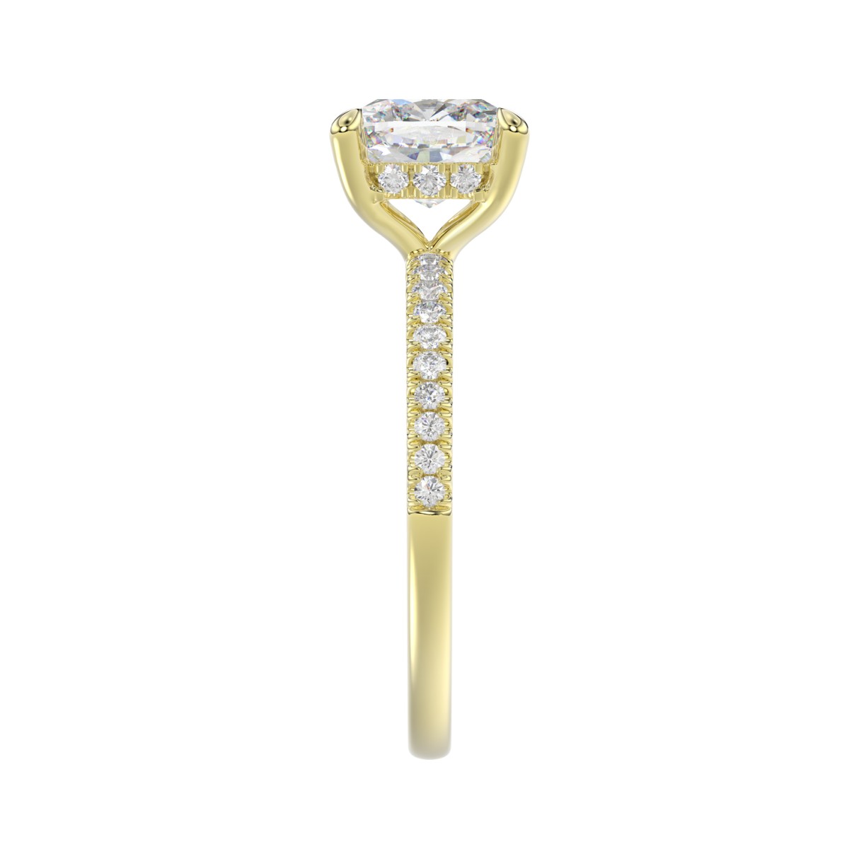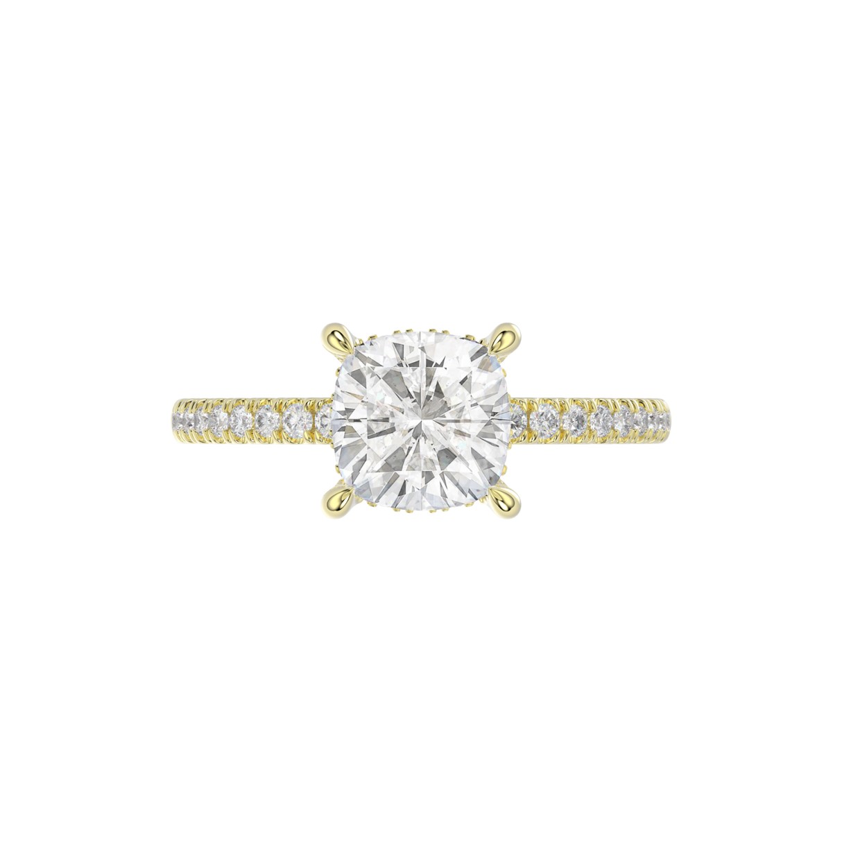 14K YELLOW GOLD 2 1/4CT ROUND/CUSHION DIAMOND LADIES RING (CENTER STONE CUSHION DIAMOND 2CT)