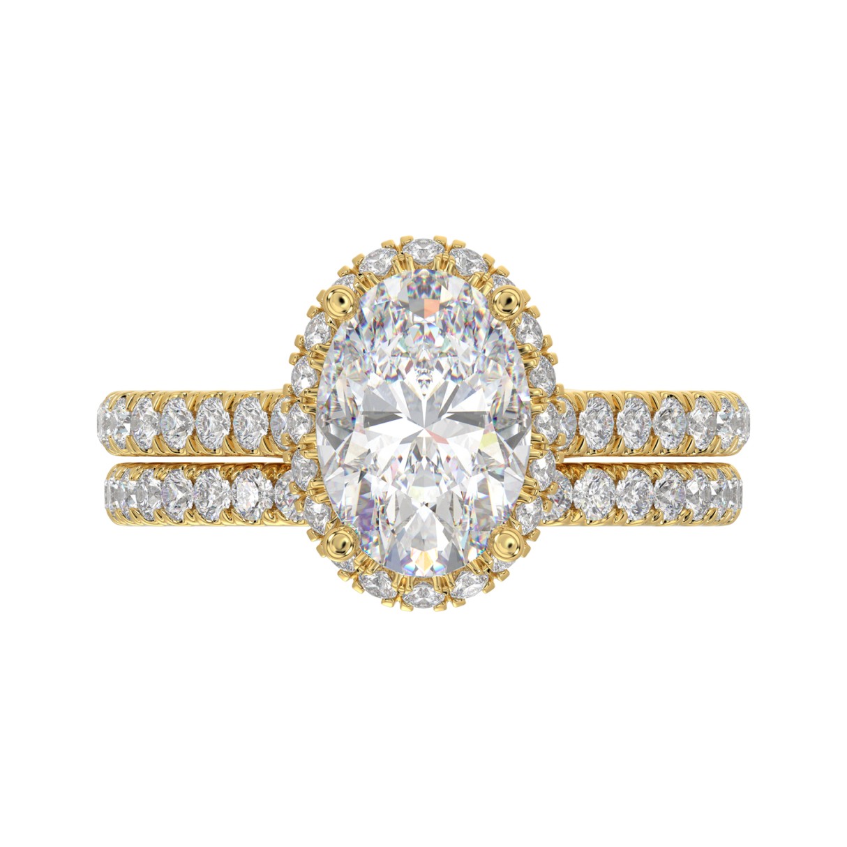 14K YELLOW GOLD 2 3/4CT ROUND/OVAL DIAMOND LADIES BRIDAL RING (CENTER STONE OVAL DIAMOND 2CT)