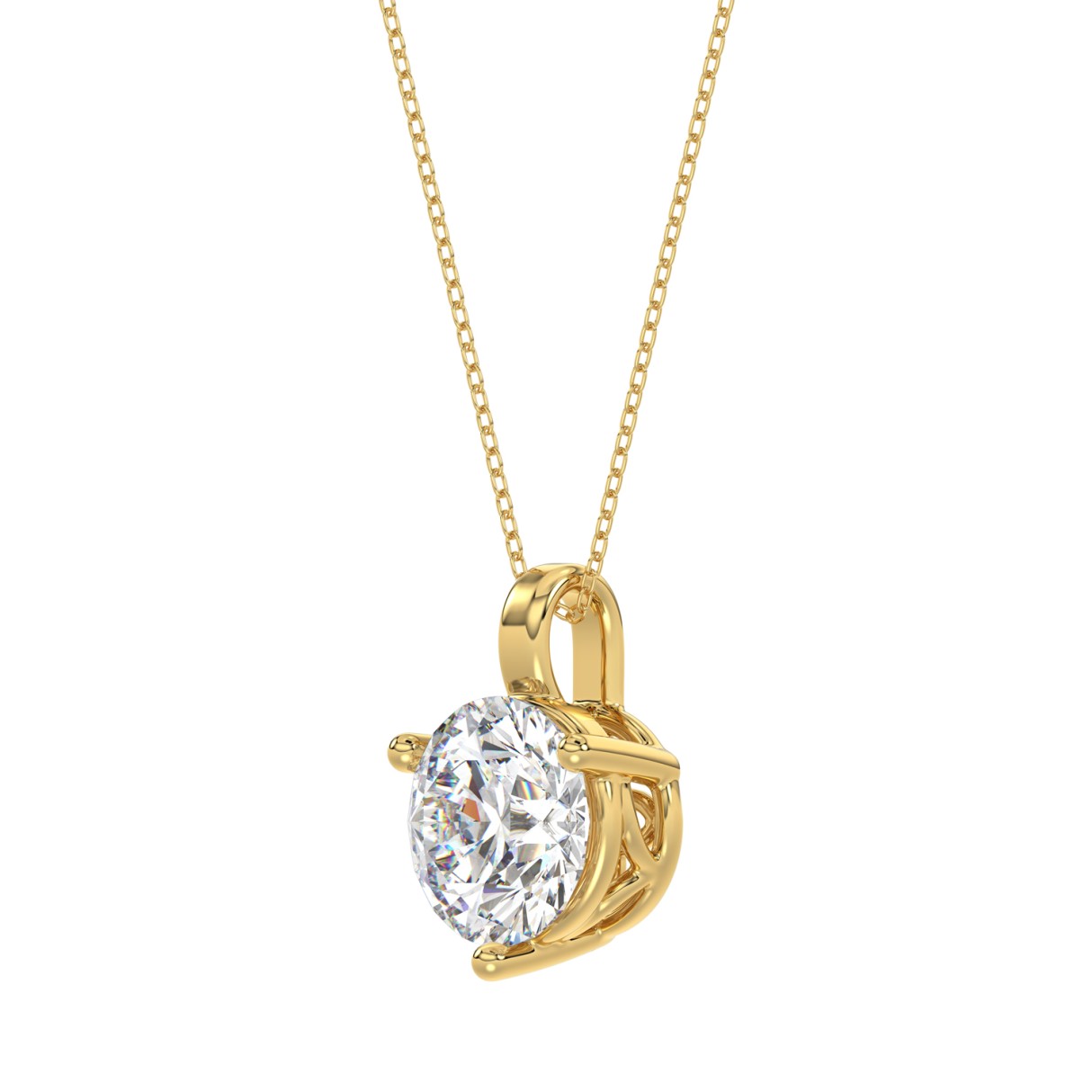 14K YELLOW GOLD 2CT ROUND DIAMOND LADIES SOLITAIRE PENDANT WITH CHAIN