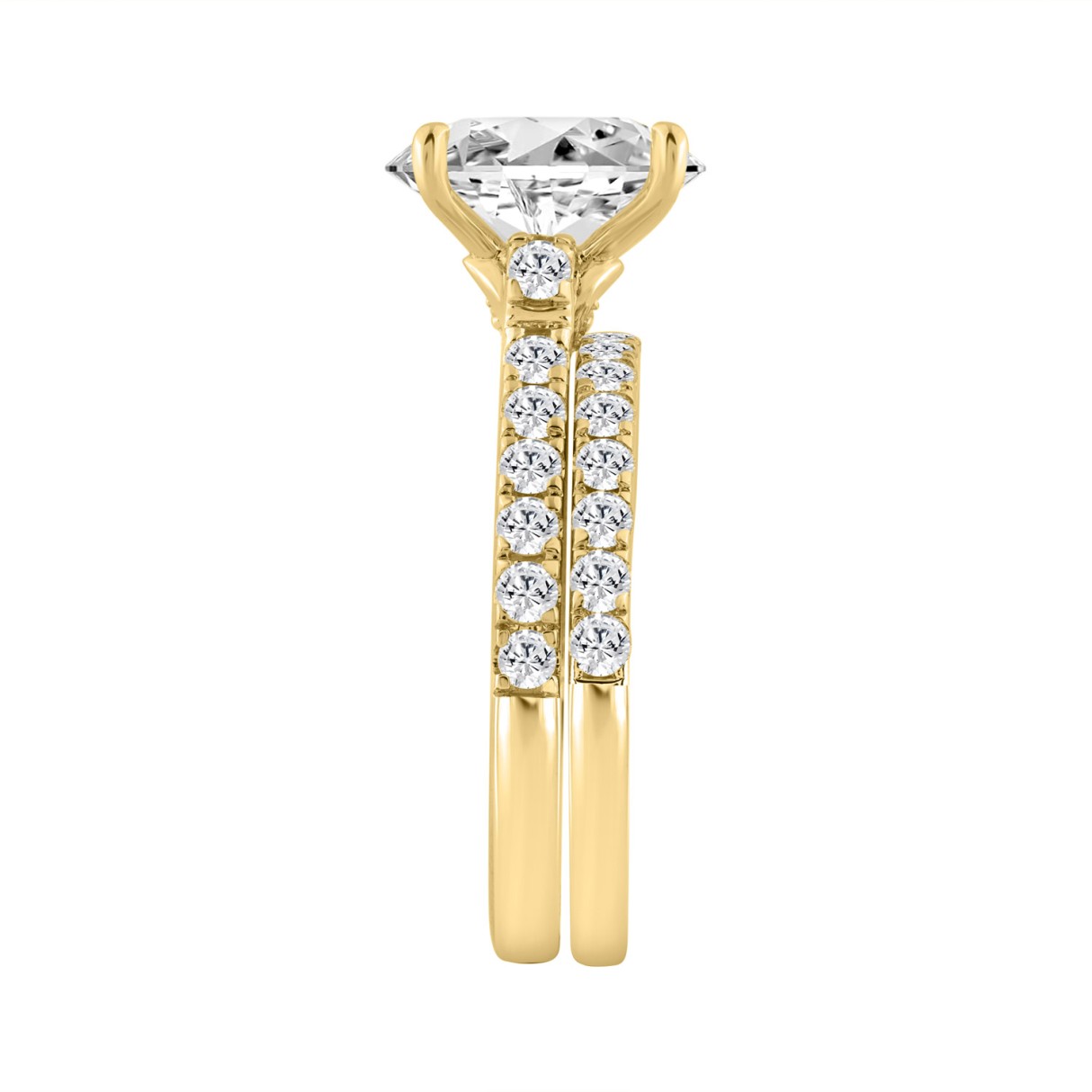 14K YELLOW GOLD 3.00CT ROUND/OVAL DIAMOND LADIES BRIDAL SET (CENTER STONE OVAL DIAMOND 2CT )