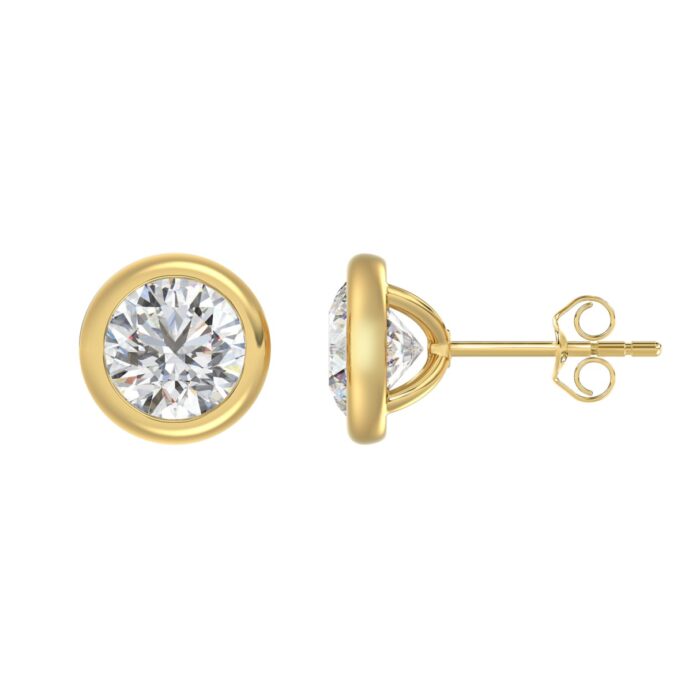 14K YELLOW GOLD 3 1/2CT ROUND DIAMOND LADIES SOLITAIRE EARRINGS
