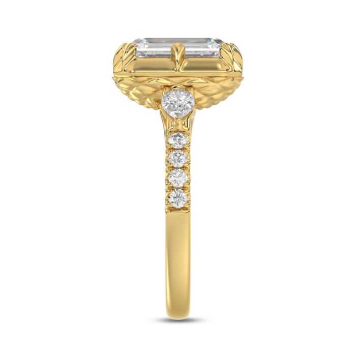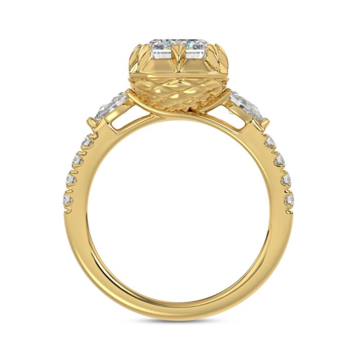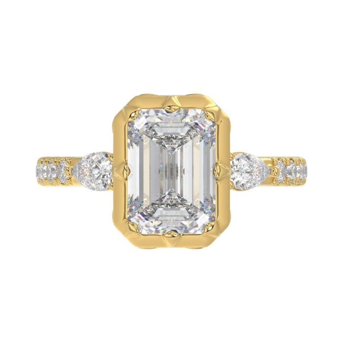 14K YELLOW GOLD 3 1/2CT ROUND/PEAR/EMERALD DIAMOND LADIES RING (CENTER STONE EMERALD DIAMOND 3CT)