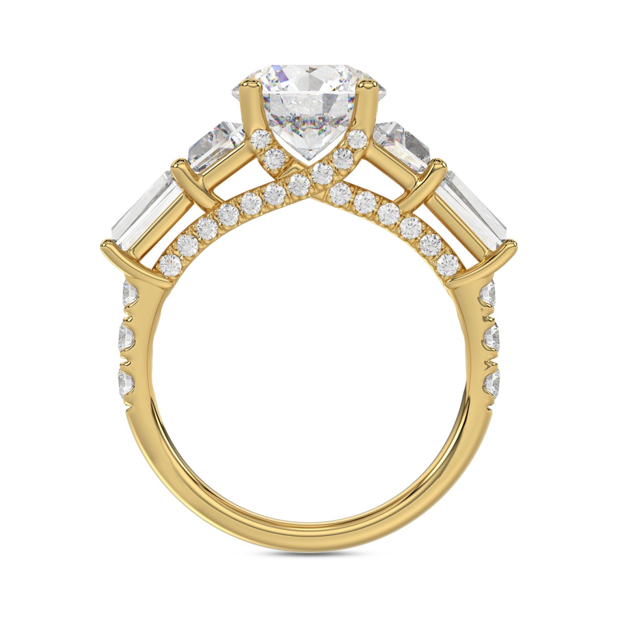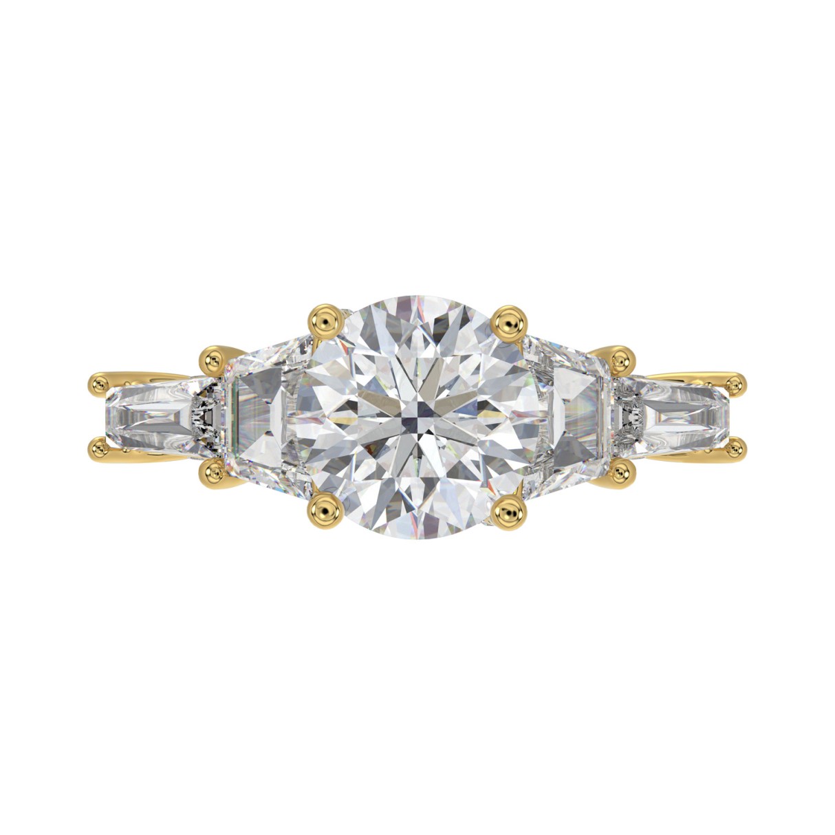 14K YELLOW GOLD 3 3/4CT ROUND/TRAPEZOID/BAGUETTE DIAMOND LADIES RING (CENTER STONE ROUND DIAMOND 2CT)