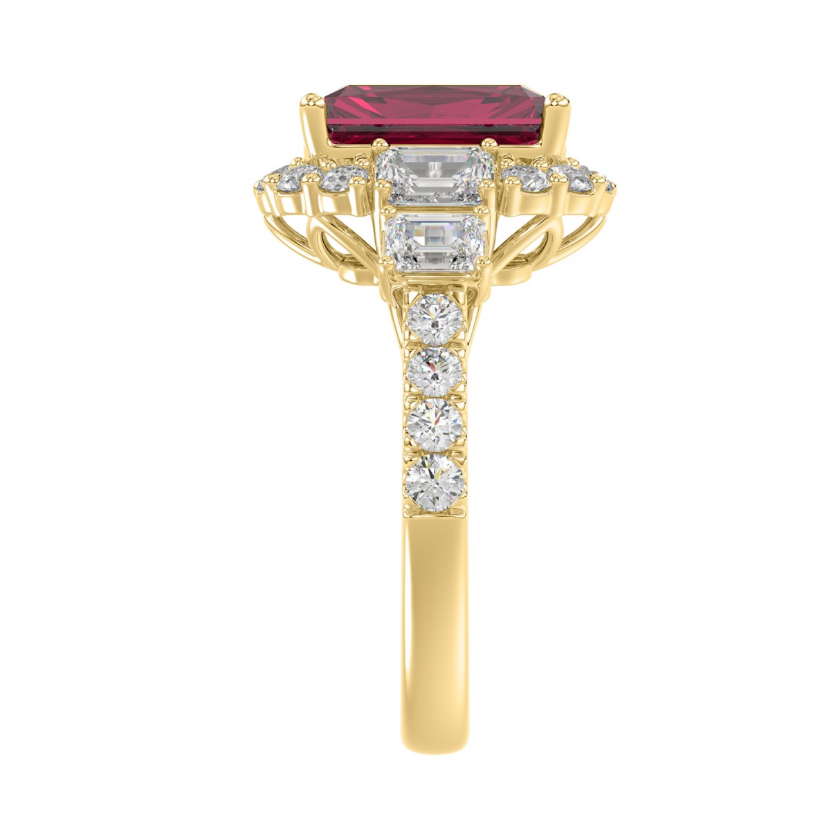 14K YELLOW GOLD 4 1/2CT ROUND/EMERALD DIAMOND LADIES RING (CENTER STONE RUBY EMERALD DIAMOND 3CT)