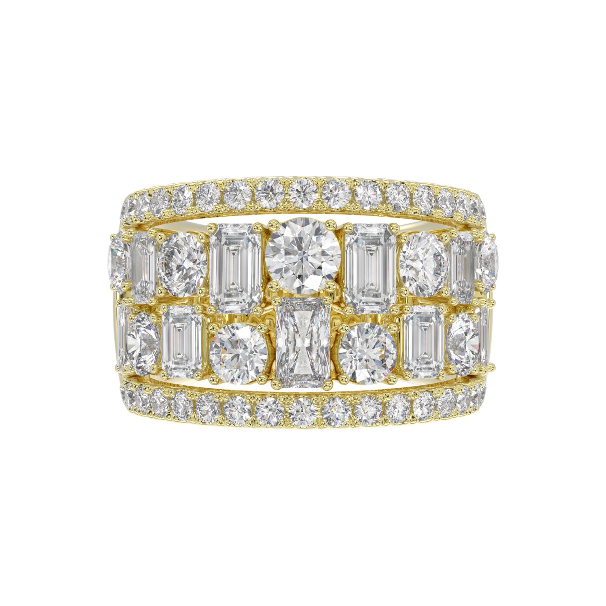 14K YELLOW GOLD 5.00CT ROUND/EMERALD DIAMOND LADIES BAND