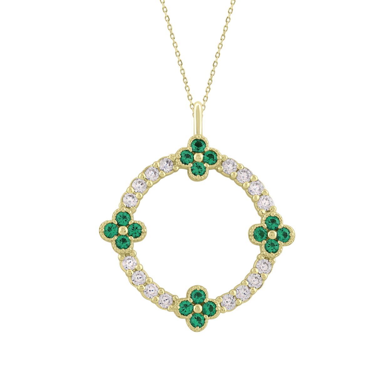 14K YELLOW GOLD 5/8CT ROUND/ROUND EMERALD GREEN DIAMOND LADIES PENDANT