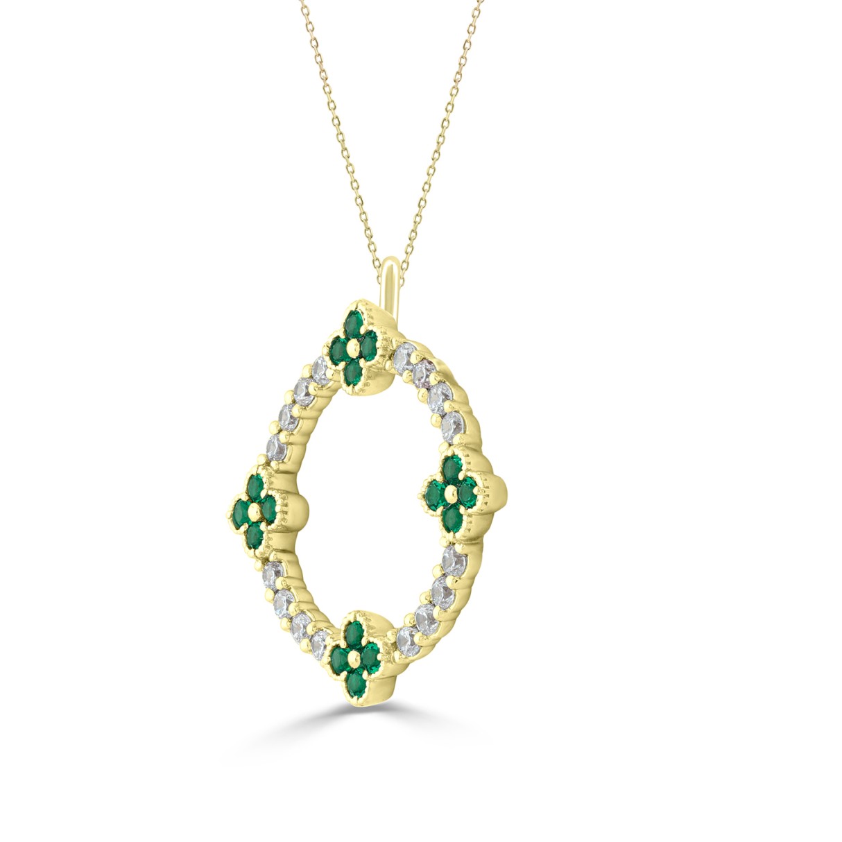 14K YELLOW GOLD 5/8CT ROUND/ROUND EMERALD GREEN DIAMOND LADIES PENDANT