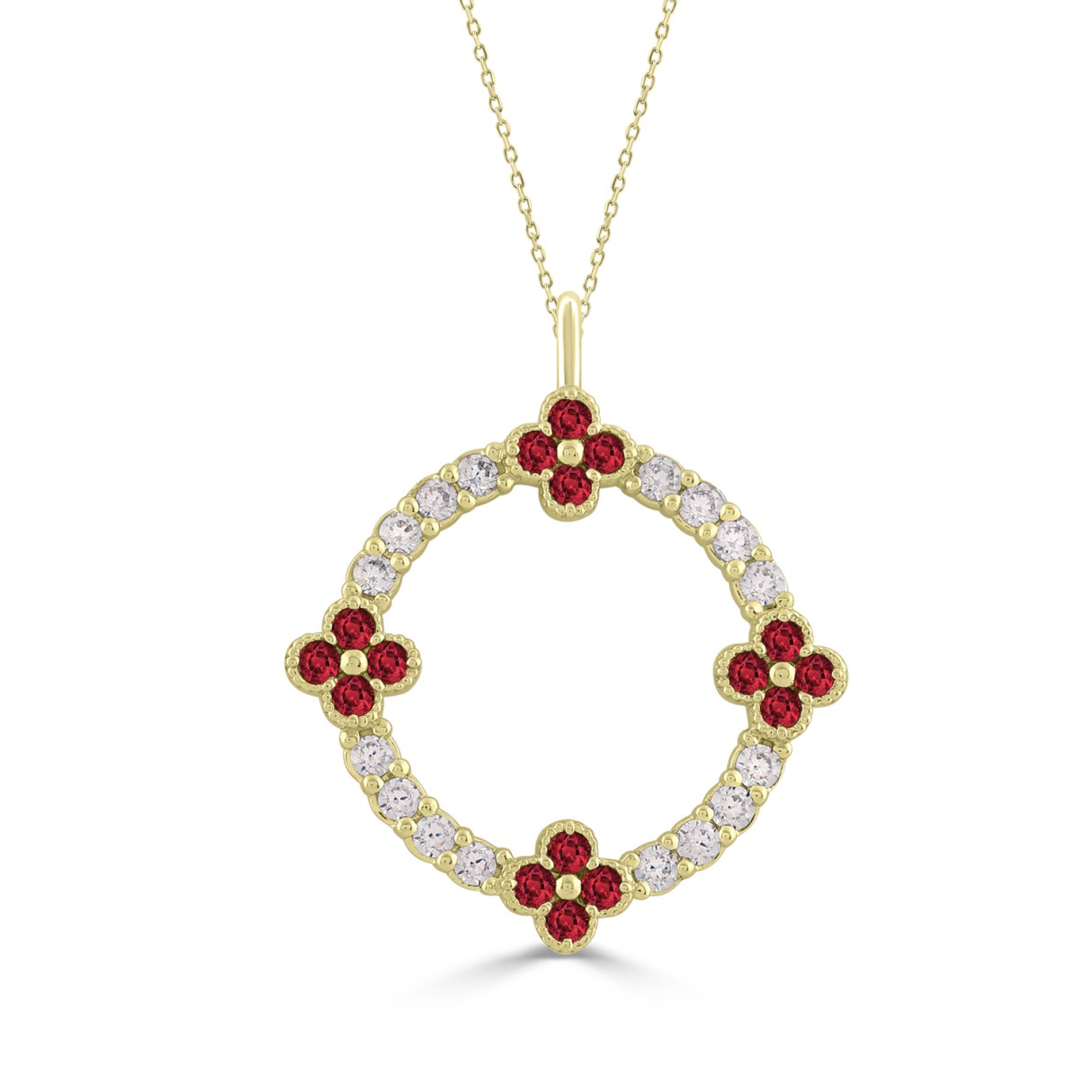 14K YELLOW GOLD 5/8CT ROUND/ROUND RUBY DIAMOND LADIES PENDANT WITH CHAIN