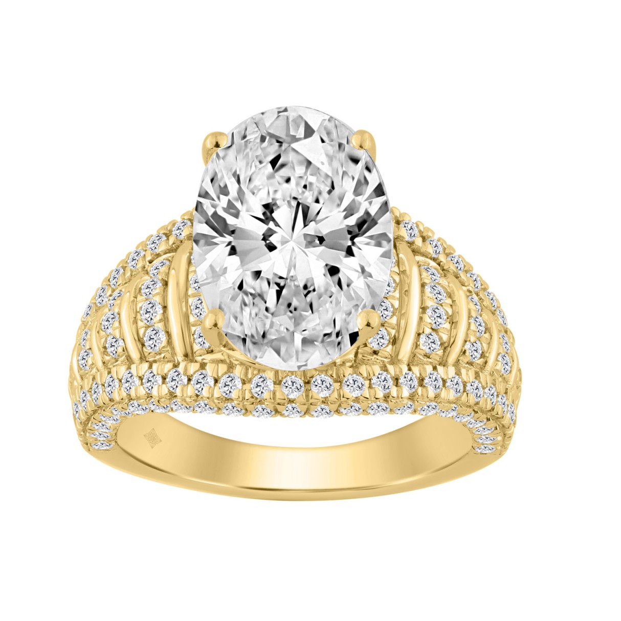 14K YELLOW GOLD 6.00CT ROUND/OVAL DIAMOND LADIES RING (CENTER STONE OVAL DIAMOND 5.00CT)