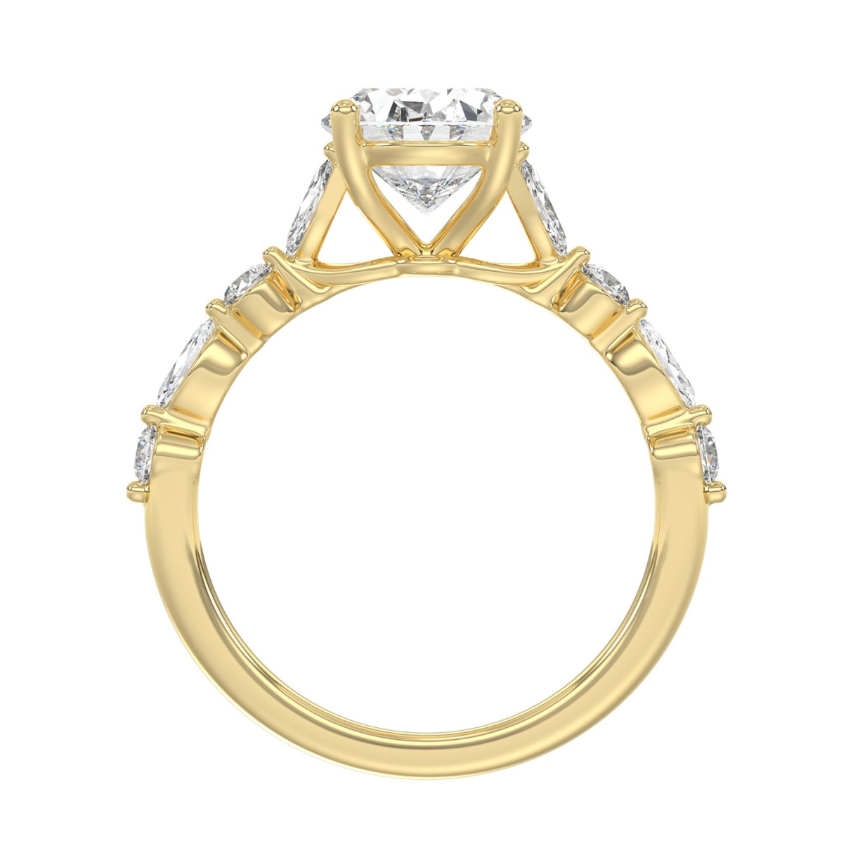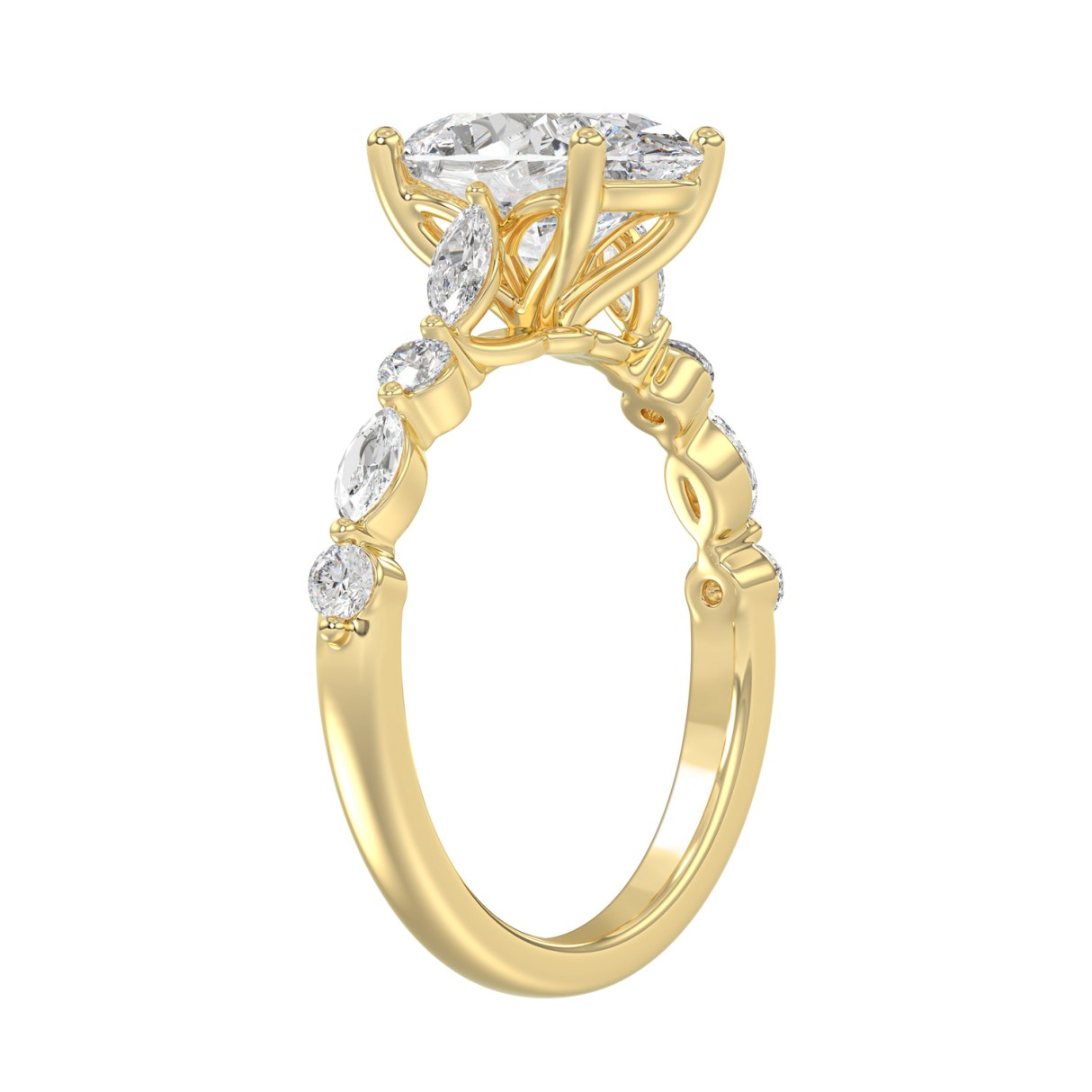 14K Yellow Gold Oval Diamond Fancy Engagement Ring for Ladies 2 1/2CT with Marquise & Round Diamond 2.00CT Oval Center stone (Color F-G -Clarity V