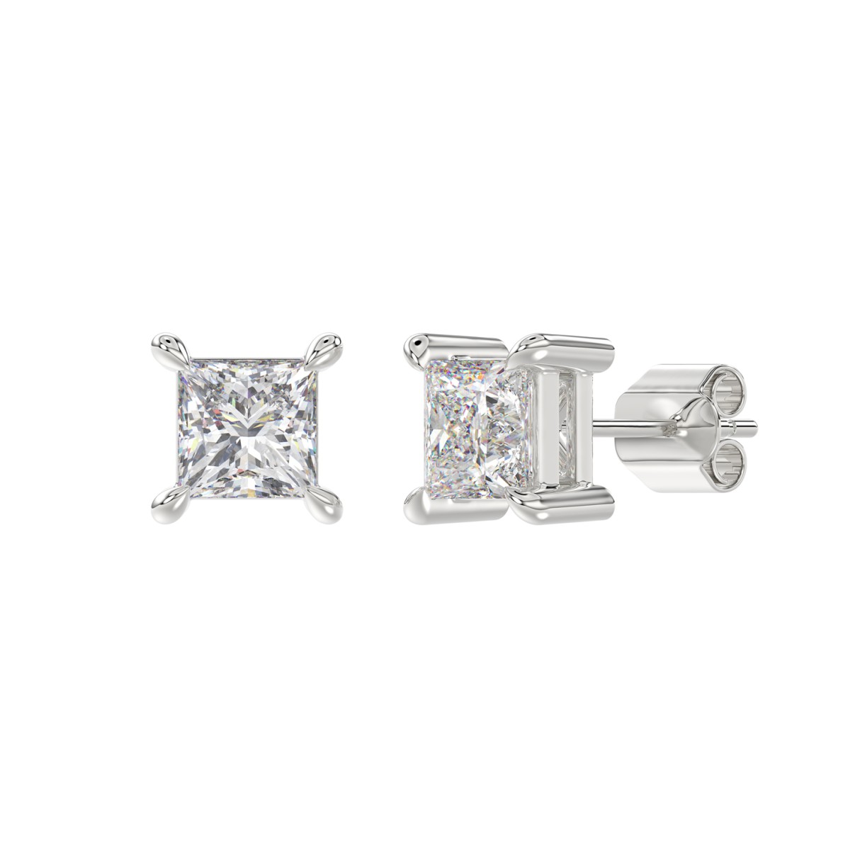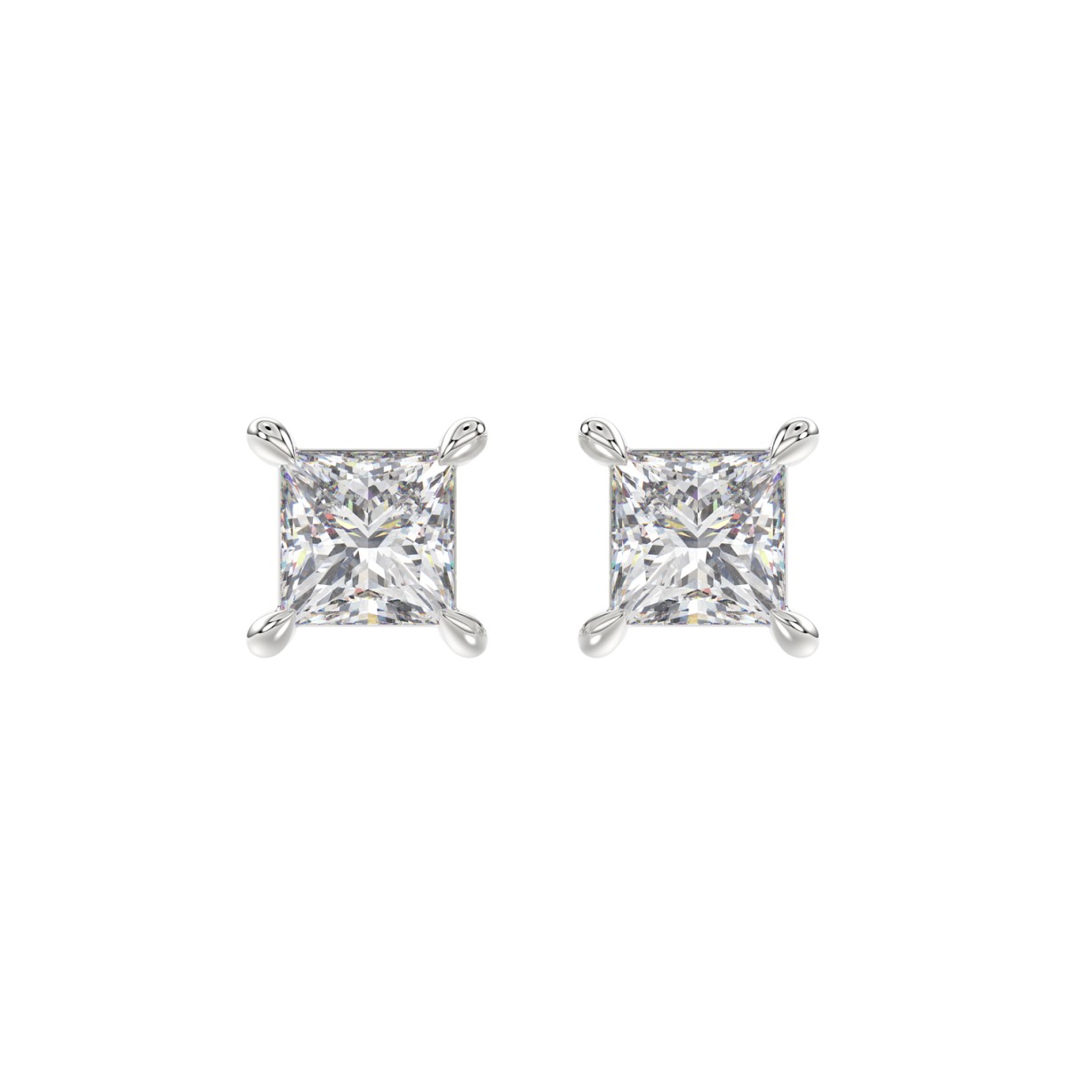18K WHITE GOLD 2.00CT PRINCESS DIAMOND SOLITAIRE EARRINGS (TALON CLAWS LOCK)
