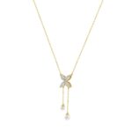 Elegant 10K Yellow Gold Marquise Diamond 3/4Ct & Pearl Butterfly Drop Necklace Fine Jewelry Gift For Her (Color F-G Clarity Vs1/Vs2)