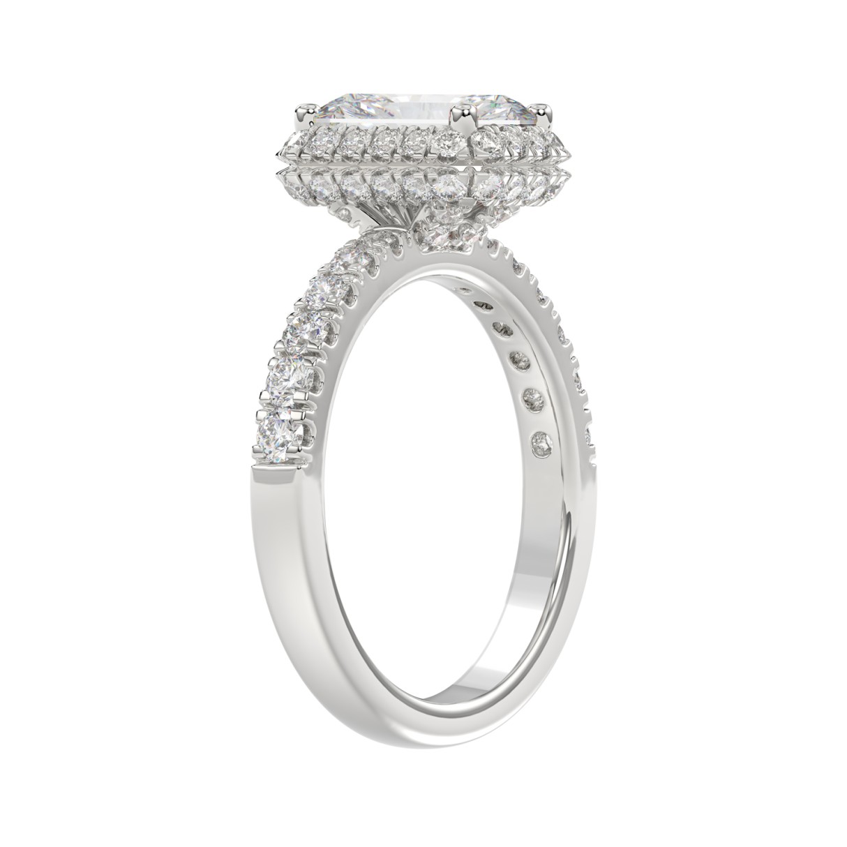 Elegant 14K White Gold 4.00Ct Round/Radiant Cut Lab Grown Diamond Engagement Ring 3.00Ct Radiant Center Stone (Color F-G -Clarity Vs1/Vs2)