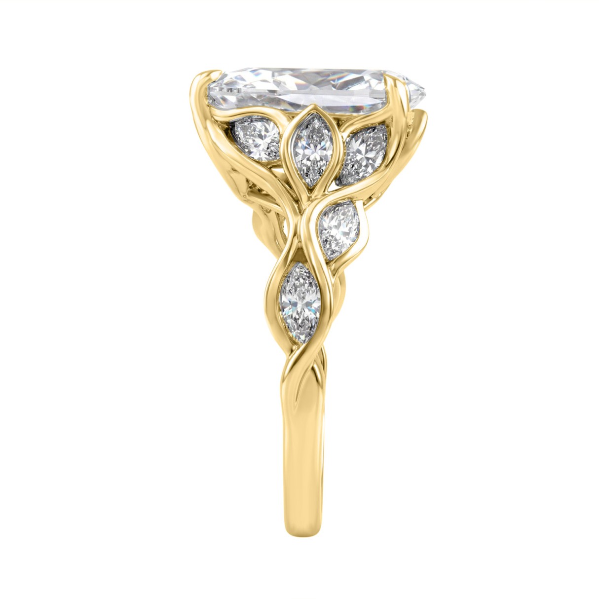 Elegant 14K Yellow Gold 4 1/5Ct Diamond Ring Round, Pear & Marquise With Marquise Side Stones, Women Fashion Ring 3Ct Pear Center Stone (Color F-G -Cl