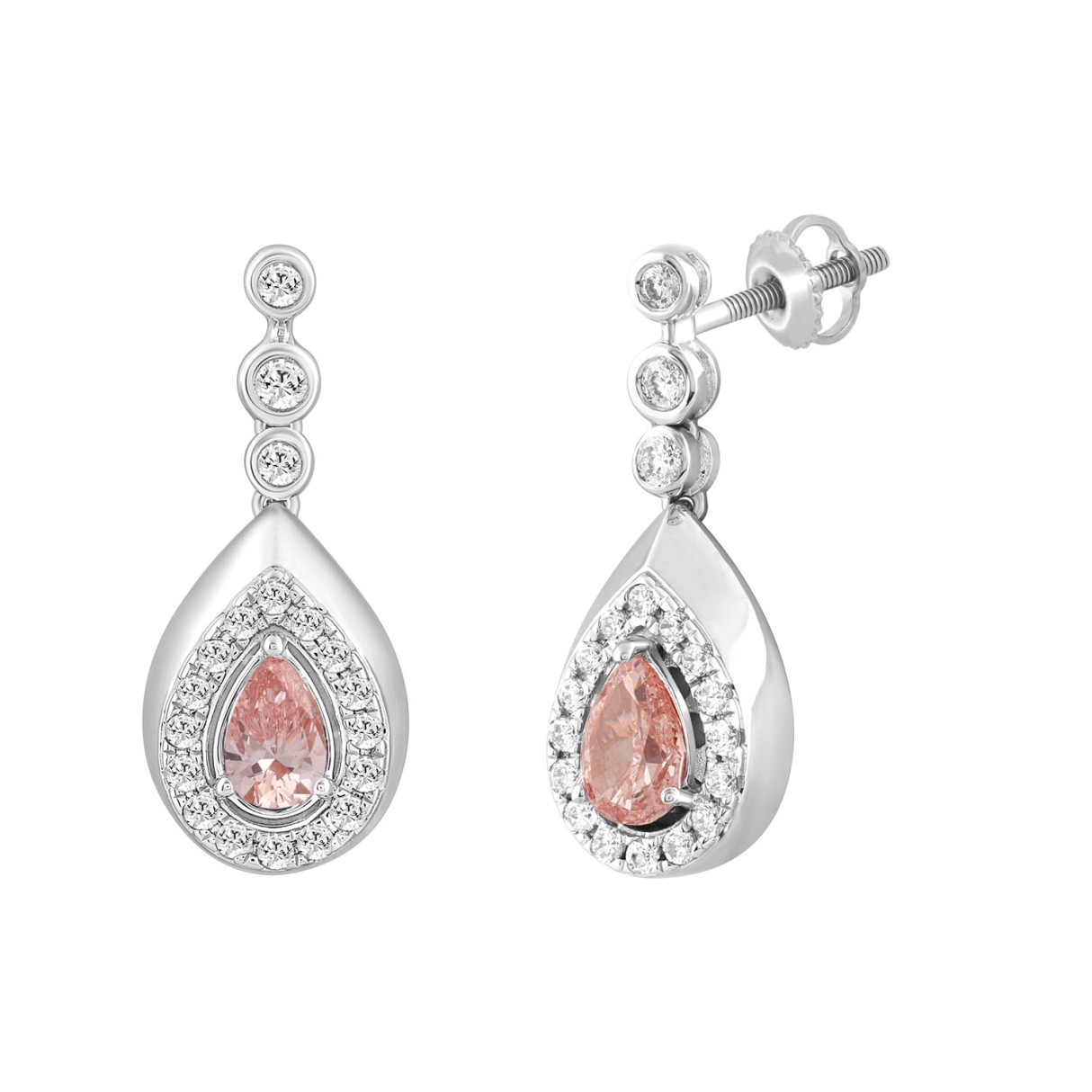 ETERNAL BLUSH COLLECTION LADIES EARRINGS 1 1/2CT ROUND/PEAR DIAMOND 14K WHITE GOLD (CENTER STONE PINK PEAR DIAMOND 1CT)