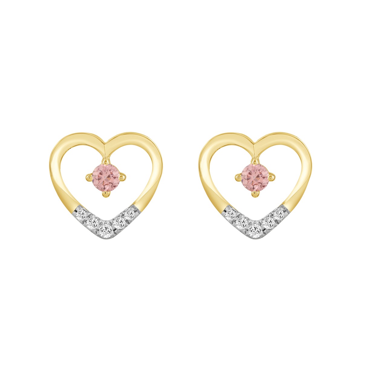 ETERNAL BLUSH COLLECTION LADIES EARRINGS 1/3CT ROUND DIAMOND 14K YELLOW GOLD (CENTER STONE PINK ROUND DIAMOND 1/6CT)