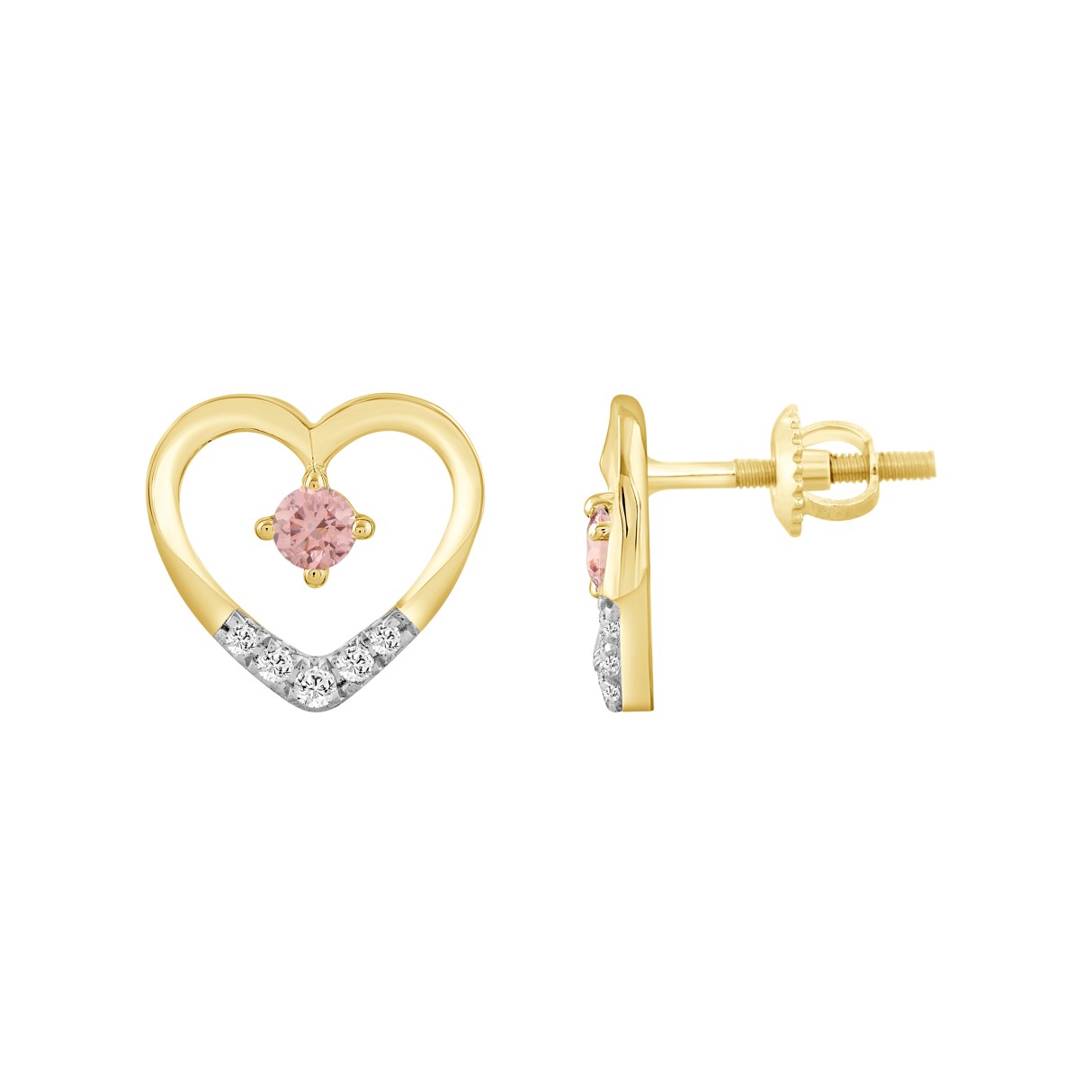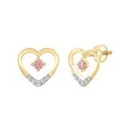ETERNAL BLUSH COLLECTION LADIES EARRINGS 1/3CT ROUND DIAMOND 14K YELLOW GOLD (CENTER STONE PINK ROUND DIAMOND 1/6CT)
