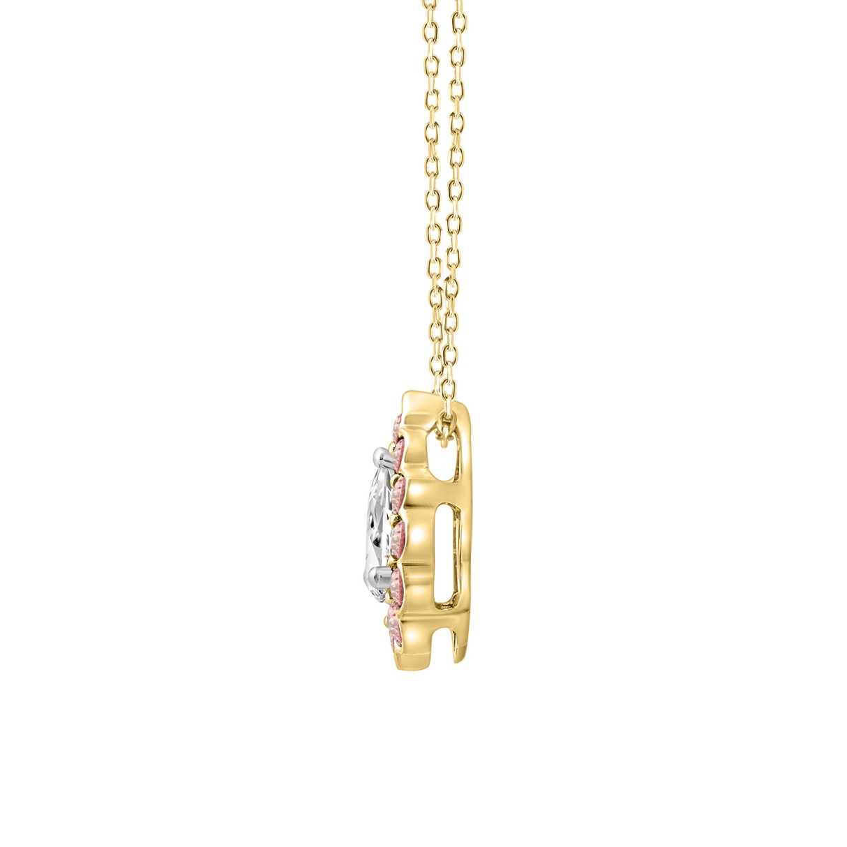 ETERNAL BLUSH COLLECTION LADIES PENDANT 1 1/4CT ROUND/PINK PEAR DIAMOND 14K YELLOW GOLD WITH CHAIN (CENTER STONE PEAR DIAMOND 3/4CT)