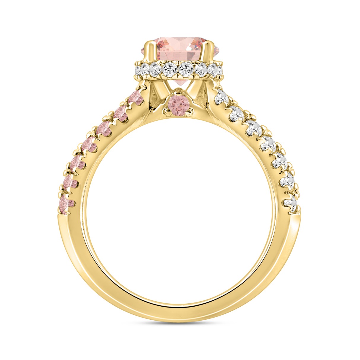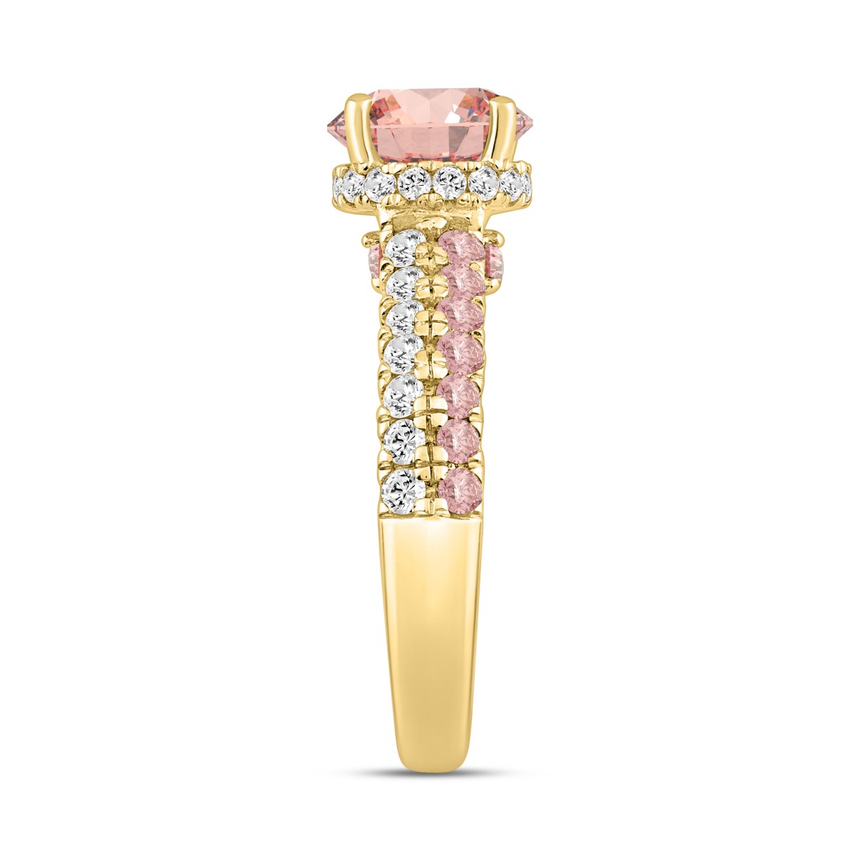 ETERNAL BLUSH COLLECTION LADIES RING 2 1/2CT ROUND DIAMOND 14K YELLOW GOLD (CENTER STONE PINK ROUND DIAMOND 1 1/2CT)