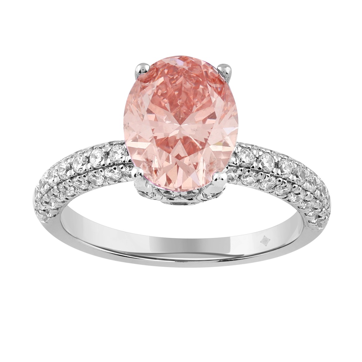 ETERNAL BLUSH COLLECTION LADIES RING 2 3/4CT ROUND/OVAL DIAMOND 14K WHITE GOLD (CENTER STONE PINK OVAL DIAMOND 2CT)