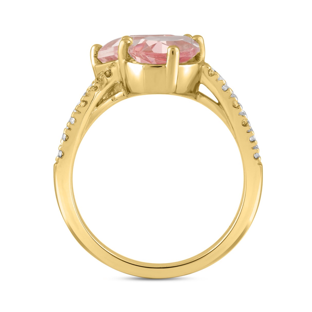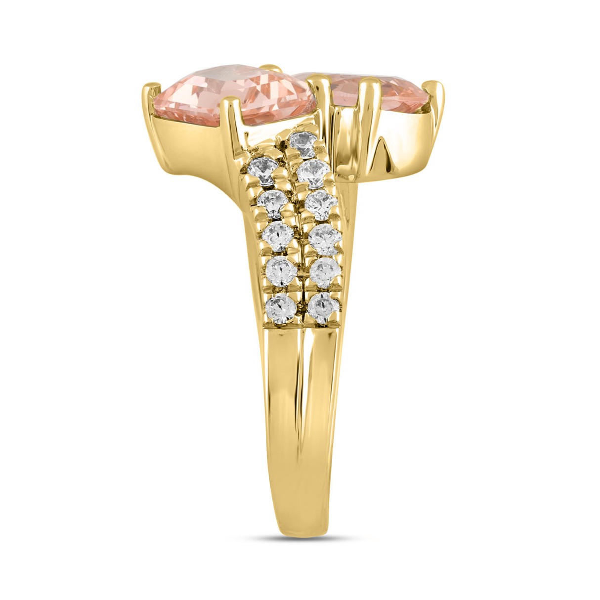 ETERNAL BLUSH COLLECTION LADIES RING 4CT ROUND/EMERALD/PEAR DIAMOND 14K YELLOW GOLD (CENTER STONE PINK EMERALD DIAMOND 1CT / PINK PEAR DIAMOND 1 1/2CT