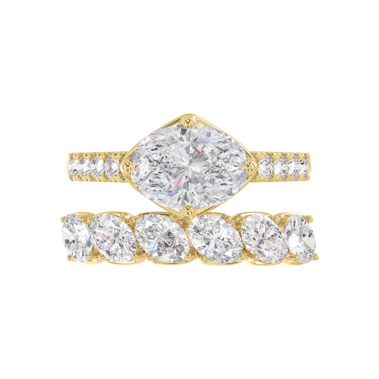 Ladies 14K Yellow Gold Ladies Elegance- Bridal Set 3 3/4CT Round & Oval Diamonds 2.00CT Oval Center stone (Color F-G -Clarity VS1/VS2)