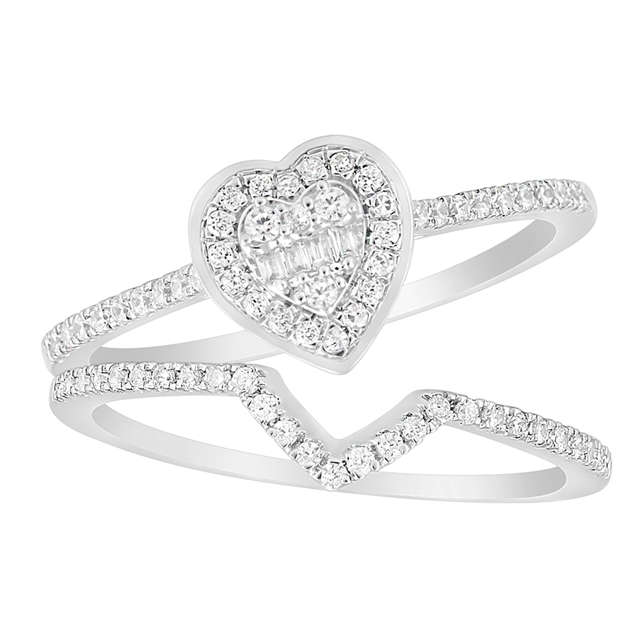 LADIES BRIDAL SET 0.40CT ROUND/BAGUETTE DIAMOND 10K WHITE GOLD