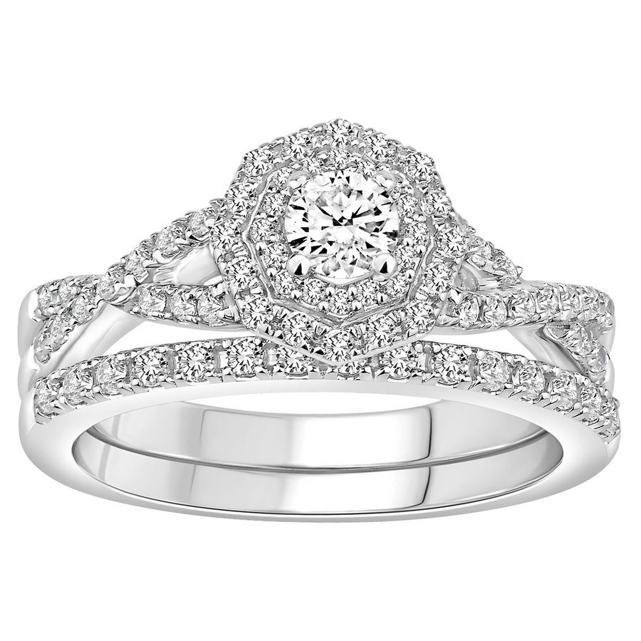 LADIES BRIDAL SET 0.75CT ROUND DIAMOND 14K WHITE GOLD (CENTER STONE 0.23CT ROUND DIAMOND)